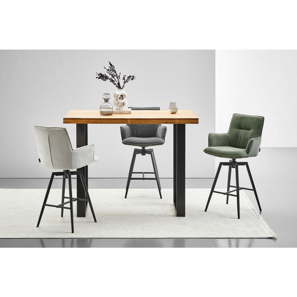 Če bo vaša jedilnica estetsko opremljena in dobro organizirana, bodo obedi z družino v njej še bolj prijetni in sproščeni.S funkcionalnim pohištvom to ne bo nikdar problem, zato izberite takšno,ki se bo v vaš dom res dobro podalo. Barska miza, ki je del blagovne znamke Landscape, vas bo očarala že na prvi pogled. Je modernega in atraktivnega videza, izdelana pa je po industrijskem navdihu. Plošča mizeje izdelana iz masivnega, oljenega lesa divjega hrasta in je v čudovitinaravni barvi. Ogrodje je iz kovine v črni barvi in se barvi lesa odličnopoda! Dimenzije: 140x80x105 cm
