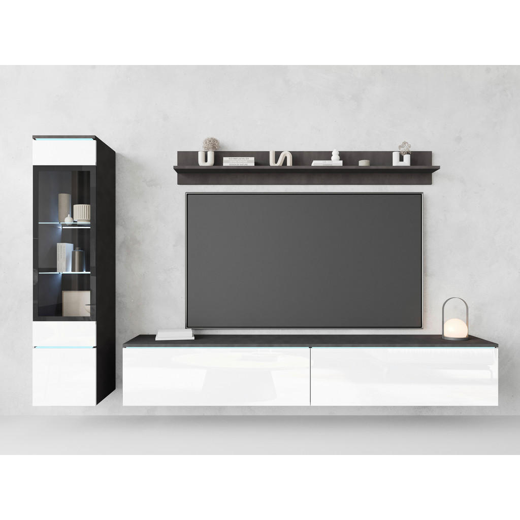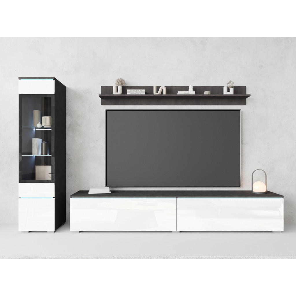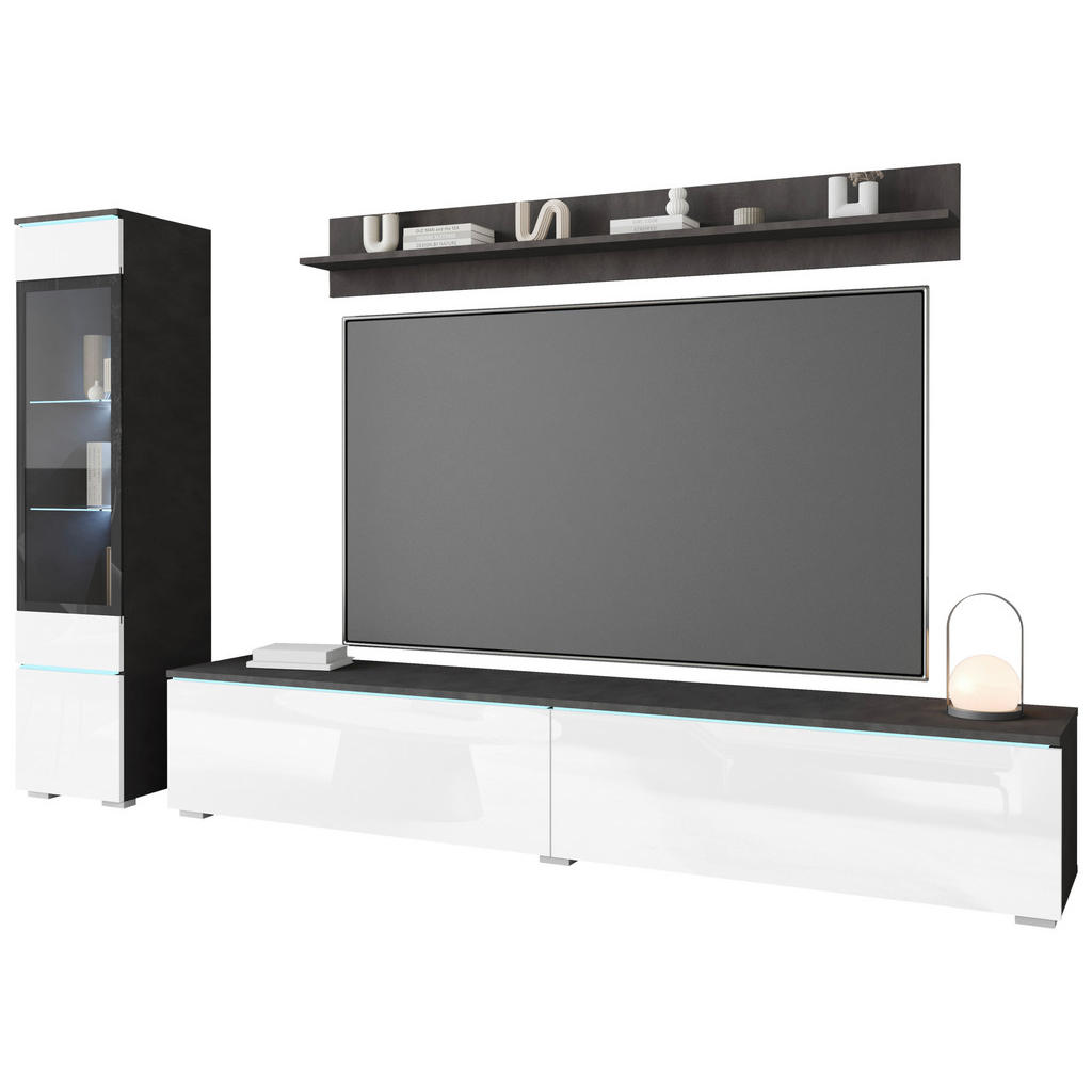 WOHNWAND, antracit, bela, visoki sijaj
