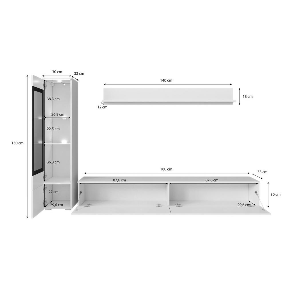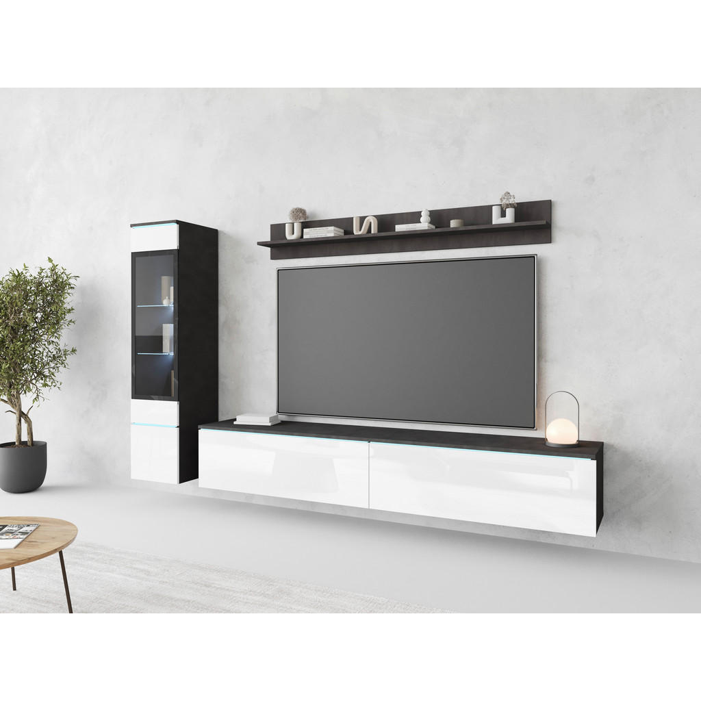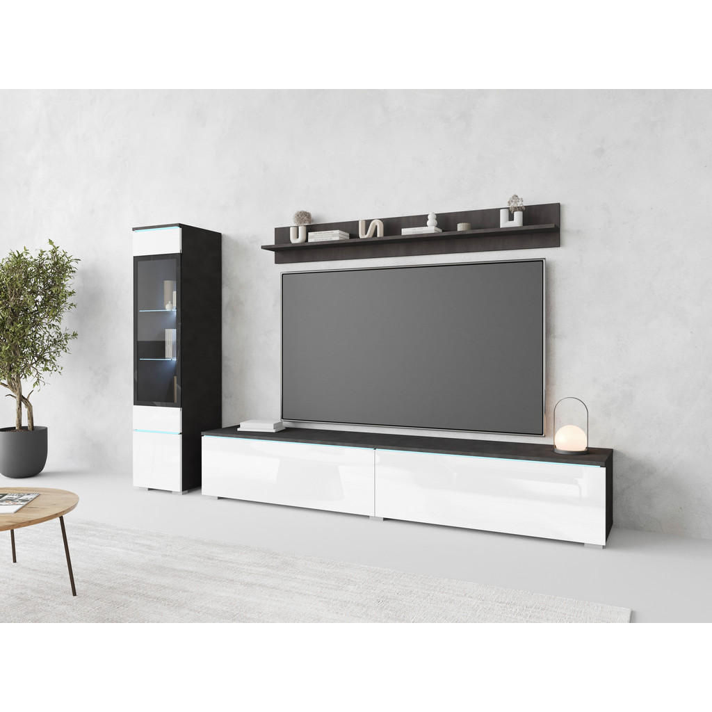 WOHNWAND, antracit, bela, visoki sijaj