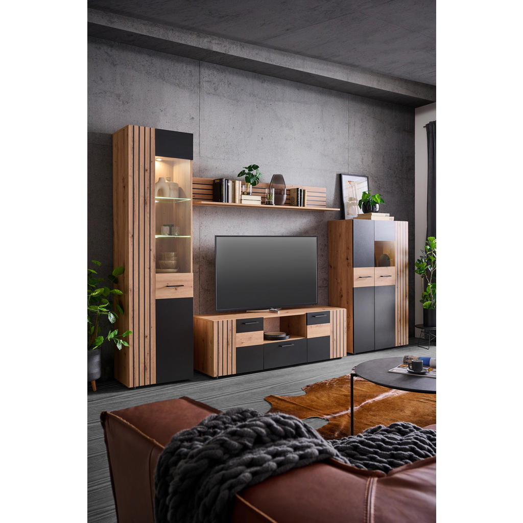 DNEVNI REGAL, črna, hrast artisan