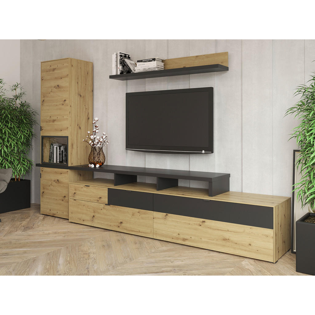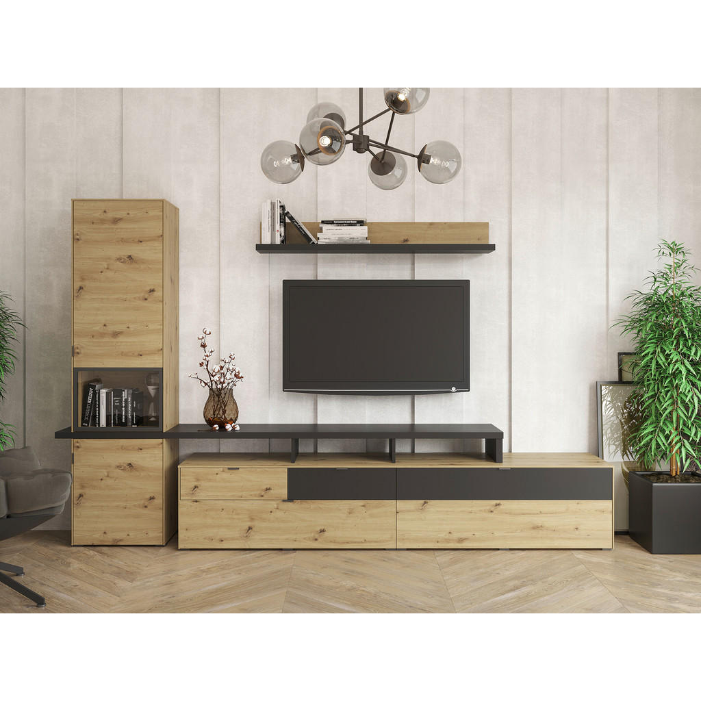 DNEVNI REGAL, črna, hrast artisan