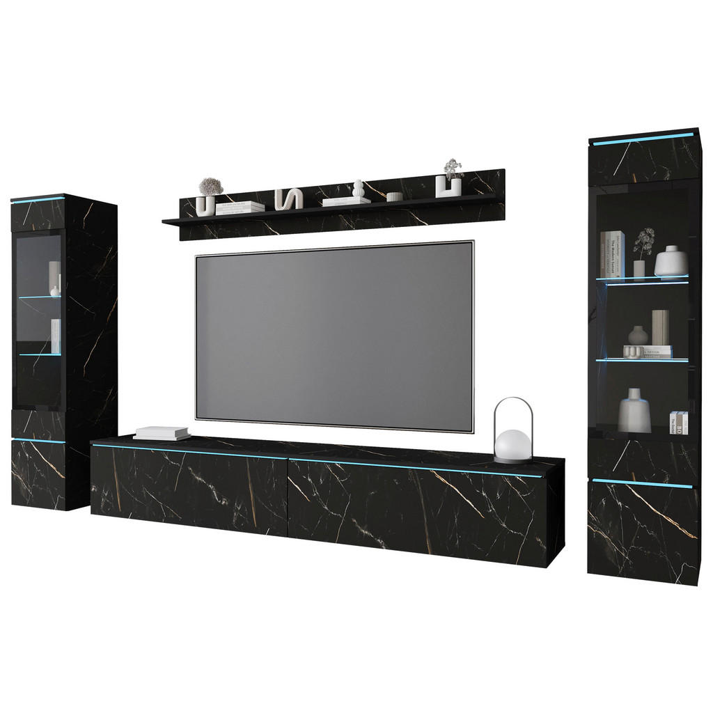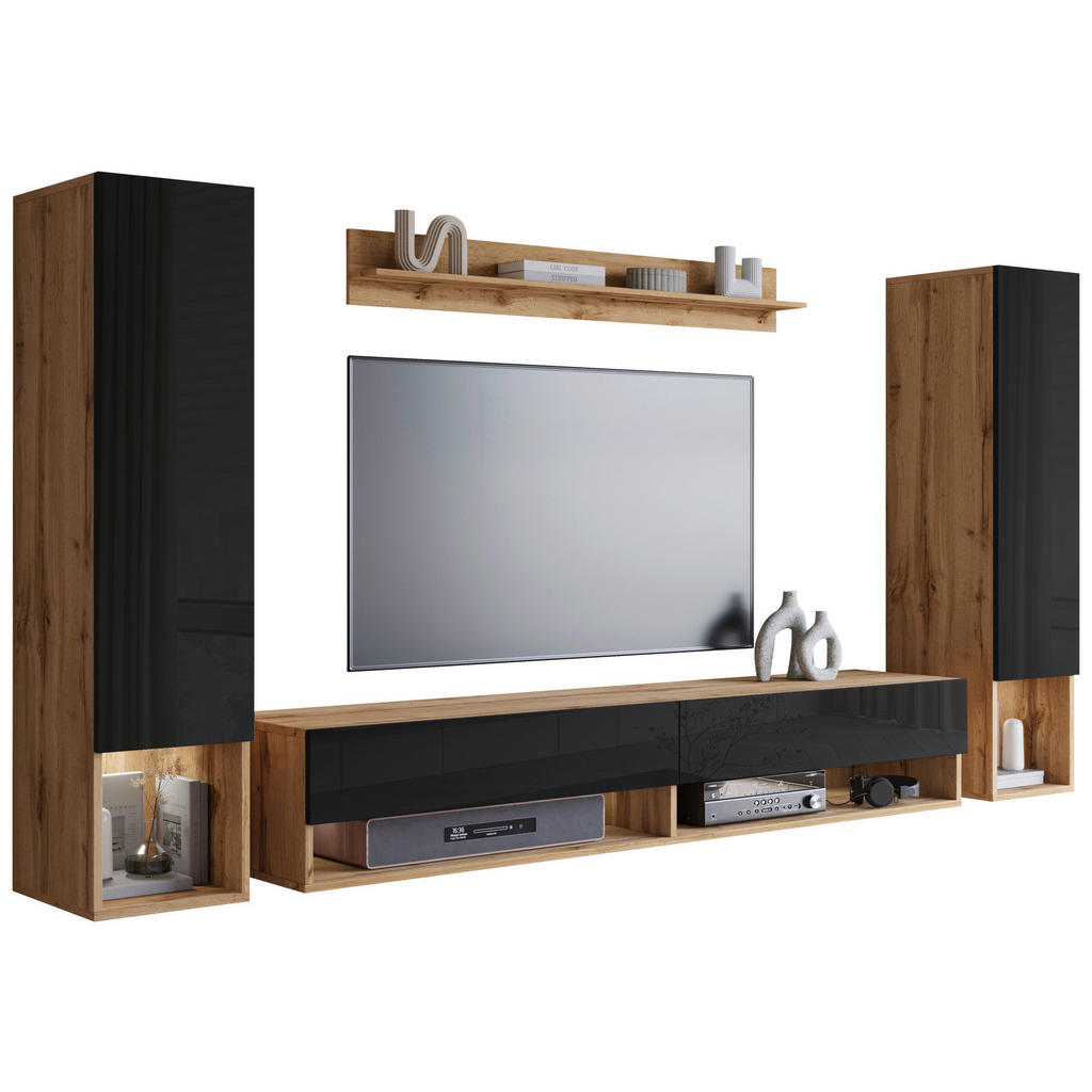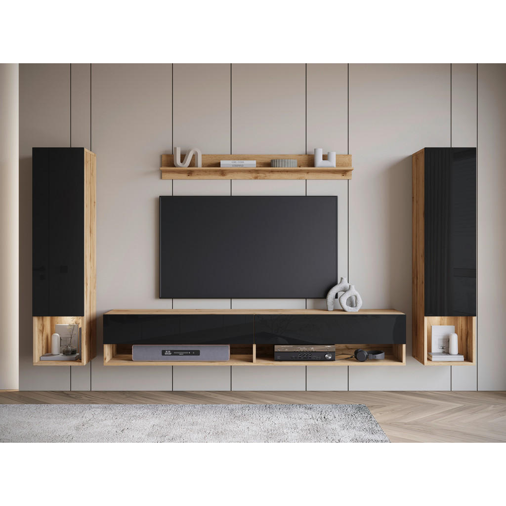DNEVNI REGAL, hrast wotan, črna, visoki sijaj