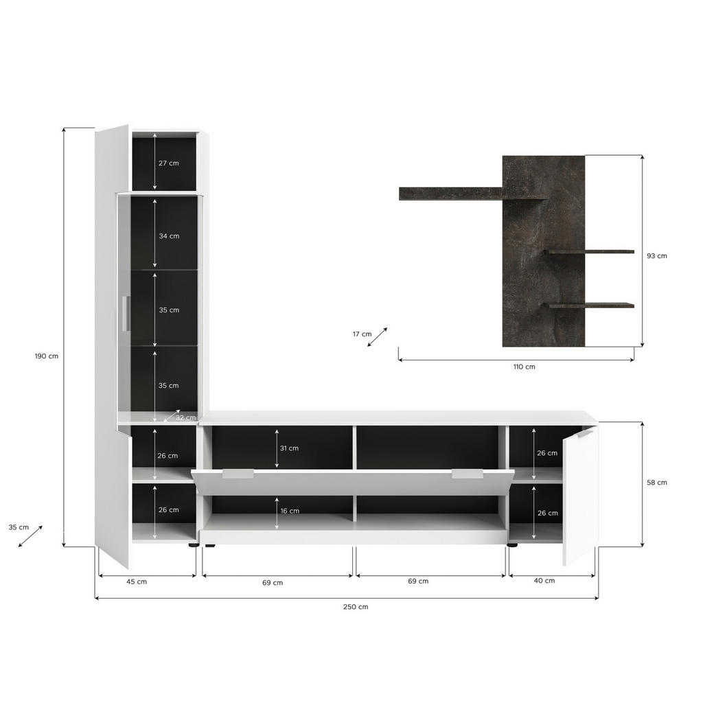 Dnevni regal, siva, bela