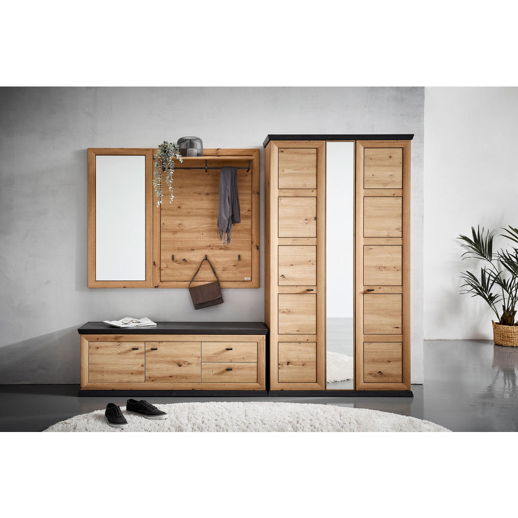 Ustvarite predsobo o kateri ste samo sanjali! Ne pozabite na pomembnost pohištva, brez katerega seveda ne gre. Ne glede na to, ali predsobo šele opremljate, ali pa jo želite le malce preurediti, pomembnoje izbrati ne samo lepo, temveč tudi kakovostno pohištvo. Kombiniratelahko pohištvene kose iz enakega programa, ki se popolno ujemajo. Blagovna znamka Hom`in, ki se lahko pohvali z masivnim, kakovostnim in stilsko dizajniranim pohištvom, predstavlja garderobno omaro iz programa Beton. Omara vas ne bo navdušila samo s svojim dovršenim videzom, temveč tudi s kakovostjo in praktičnostjo. Gre za garderobno omaro, izdelano iz hrasta, ki doda pridih rustikalnosti in domačnosti. Okvir v antracit sivi barvi ustvari kontrast, ki vsekakor poskrbi za piko na i! Omara ponuja dovolj shranjevalnega prostora, saj boste v njo lahko shranili vse vaše predmete in dodatke. Slednji bodo odslej vedno lepo urejeni in organizirani. Garderobna omara se bo popolno ujela s pohištvom iz enakega programa. Dimenzije: 103×196,5×38,5 cm
