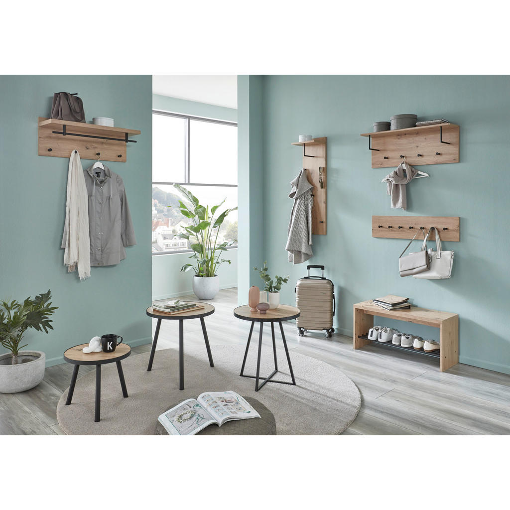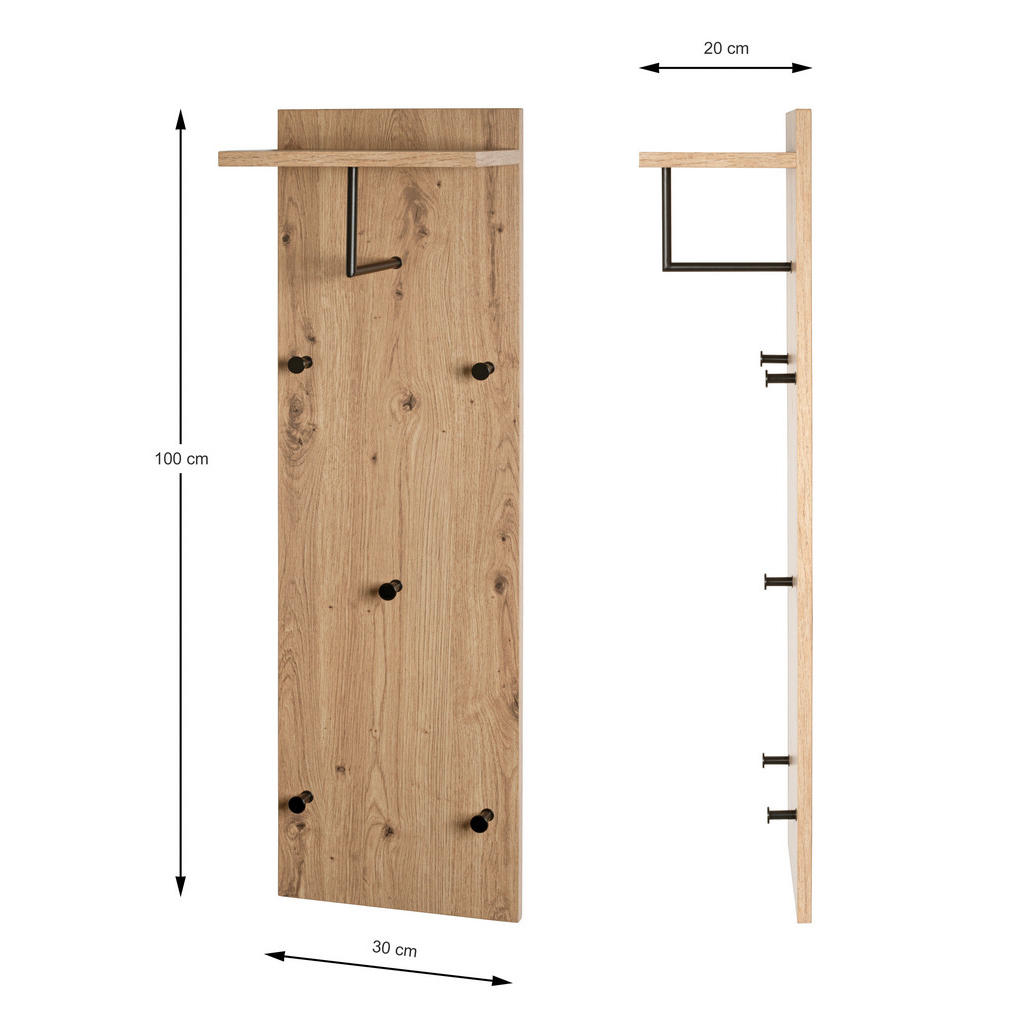 Predsoba ali hodnik je eden izmed najpomembnejših prostorov vsakega doma. Je prva stvar, ki jo gostje vidijo, zato je pomembno, da je videti prijetna, stilsko dovršena in hkrati praktična. Garderobni panel XORA je izvrstna izbira za to, saj se lahko pohvali z dovršenim videzom v prijetni barvi hrasta, ki se bo odlično podal v vaš prostor. Panel je izdelan iz kakovostnih materialov, kar zagotavlja njegovo vzdržljivost in trajnost. Opremljen je s petimi kljukicami za obešanje oblačil ter z eno polico, ki omogoča shranjevanje različnih predmetov. Njegova velikost je 30x100x20 cm, kar ga naredi prostorsko učinkovitega in praktičnega za uporabo. Garderobni panel XORA lahko kombinirate s pohištvom iz enakega programa, kar bo vašemu prostoru dodalo še več kohezivnosti in sloga.