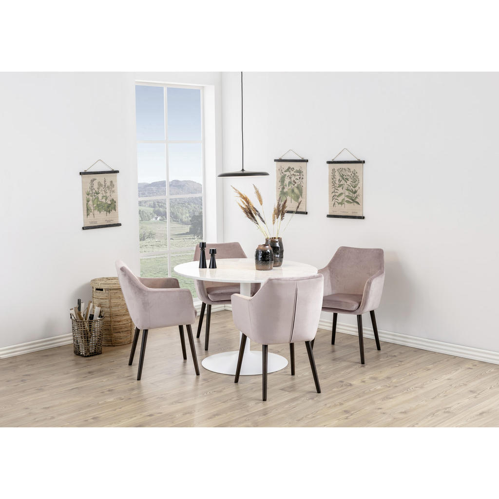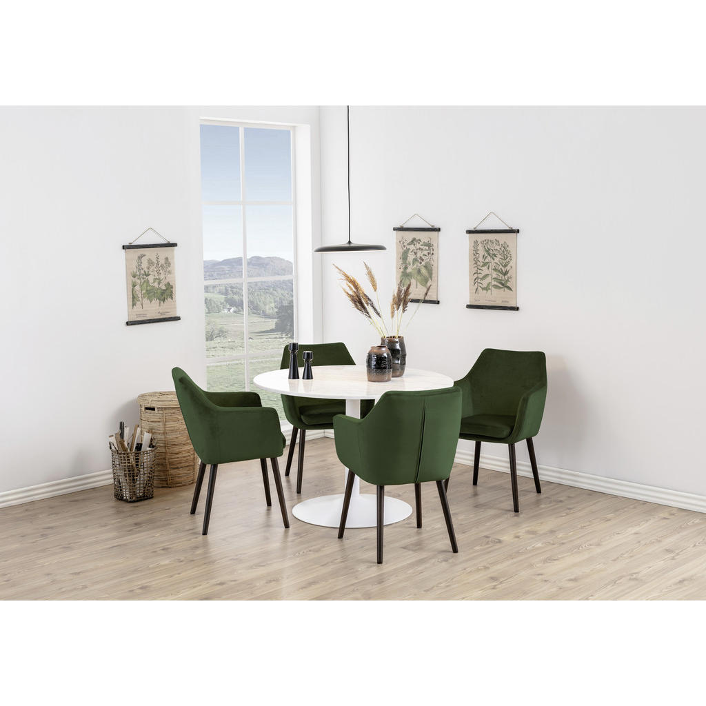 Blagovna znamka Livetastic, katere ime lahko z nekaj domišljije prevedemo v ‘fantastično življenje,’ to besedno zvezo tudi upraviči. Nudi sodobno pohištvo za širok spekter prostorov (med drugim dnevne sobe, pisarne, spalnice, jedilnice) in potreb. Jedilna miza te znamke s premerom 110 je primerna za 3-4 osebe ter je odlična izbira za majhno, a sodobno ter sofisticirano jedilnico. Trdna stebrasta noga pomeni stabilnost, lakirano jeklo in naravni marmor pa trpežnost. Ključne prednosti: Preprosto vzdrževanje: Za čistočo zadošča občasno brisanje s suho krpo. Kvalitetni materiali: Robustna zmes jekla in marmorja mizi ob eleganci zagotavlja dolgo življenjsko dobo. Izredno visoka nosilnost, ki sega do 100 kg. Lastnosti: Dimenzije: Dolžina 110 cm, širina 110 cm, višina 75 cm Barva: Bela Maks. obremenitev: Pribl. 100 kg Debelina materiala: Pribl 18 mm Materiali: Naravni marmor, lakirano jeklo