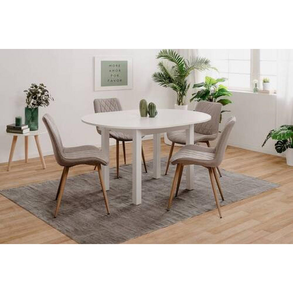 Jedilna miza je idealna izbira za sodobna stanovanja, kjer združuje funkcionalnost in estetiko v enem. Njena elegantna bela barva in okrogla oblika prinašata svežino v vsak prostor, hkrati pa omogočata prijetno druženje ob obrokih. Miza je izjemno praktična zaradi svoje iztegljive funkcije, ki z eno vstavno ploščo poveča površino za kar 40 cm, kar je odlična rešitev za nepričakovane goste ali večje družine. Kvalitetna melaminska površina zagotavlja enostavno čiščenje in odpornost na vsakodnevno uporabo, medtem ko robustna konstrukcija prenese obremenitve do 100 kg. Zaradi premišljene zasnove s štirimi stabilnimi pravokotnimi nogami je miza stabilna in varna, obenem pa nudi dovolj prostora za noge pod mizo. Ključne prednosti: Iztegljiva z eno vstavno ploščo, ki poveča dolžino mize za 40 cm Elegantna okrogla oblika v moderni beli barvi, ki dopolni vsak ambient Vzdržljiva melaminska površina za enostavno čiščenje