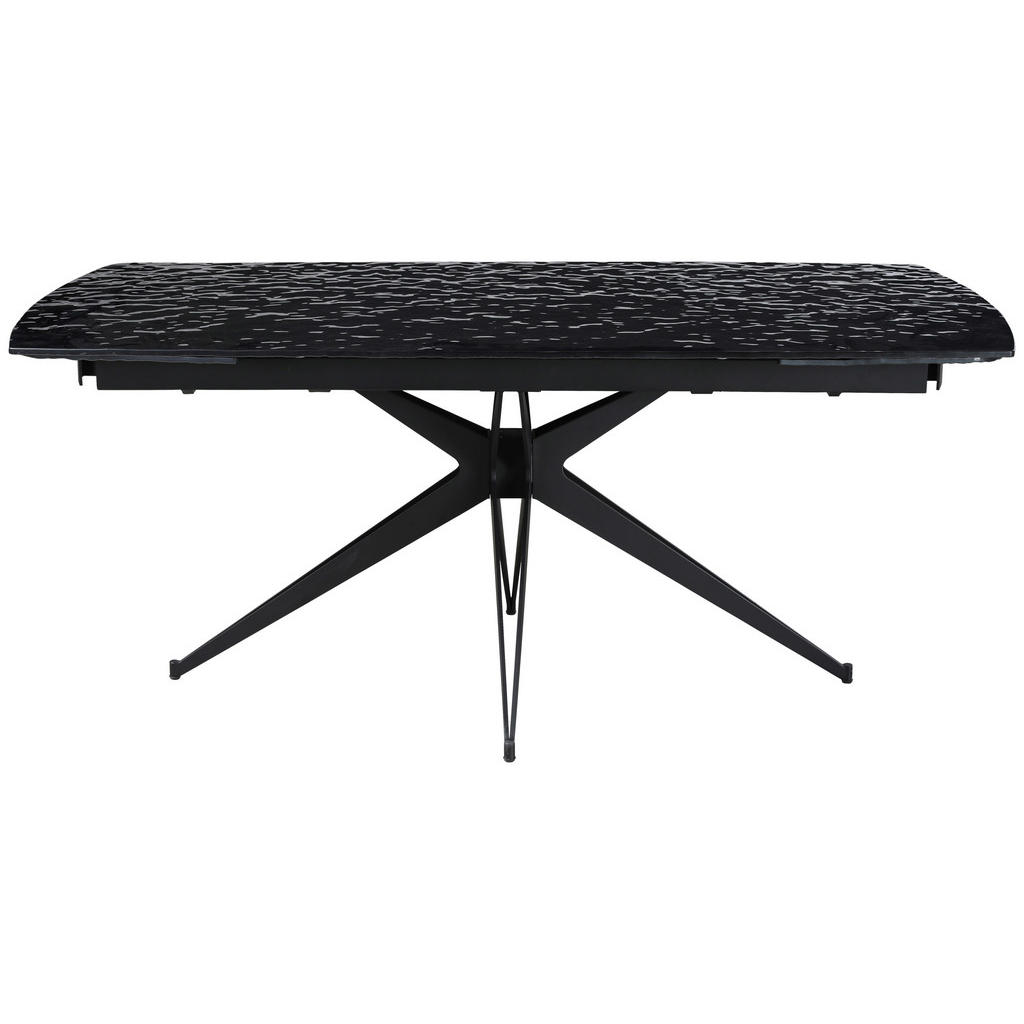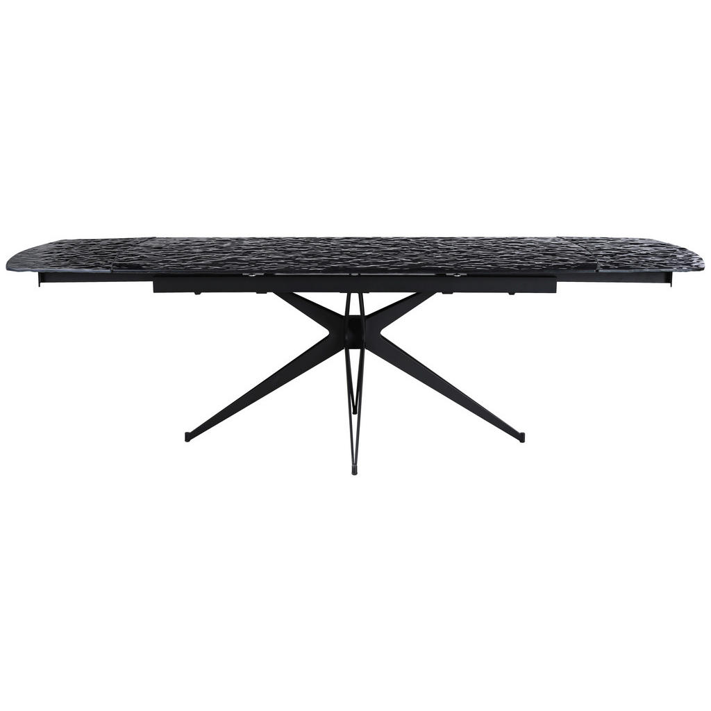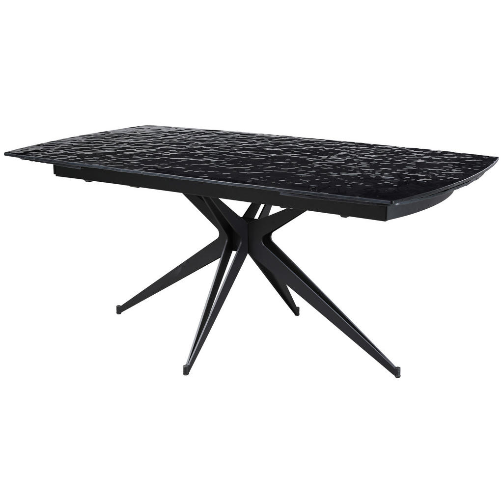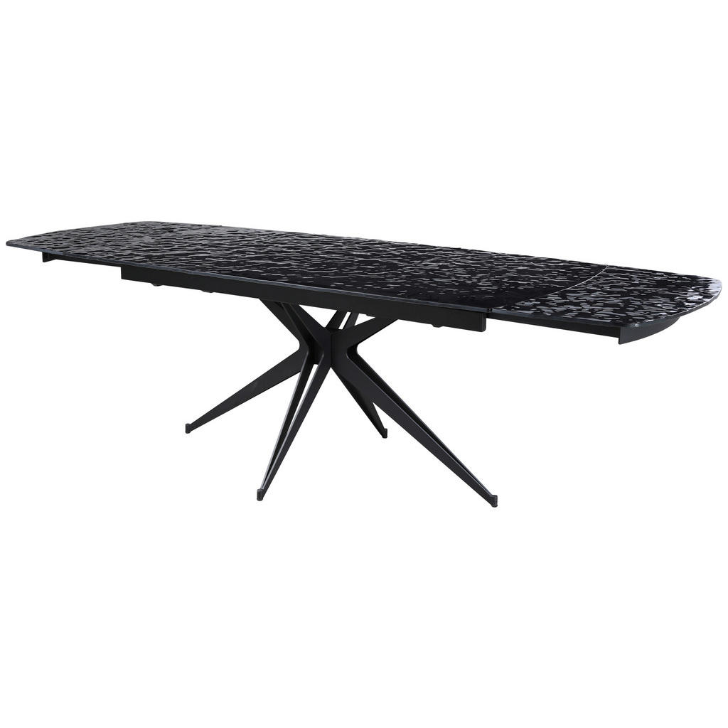 Blagovna znamka Novel združuje kakovost, eleganco in funkcionalnost ter se ponaša z modernimi, a nevpadljivimi izdelki, ki bodo gotovo obogatili marsikateri notranji prostor. Ponudba zajema dnevne sobe, kuhinje, jedilnice, kopalnice, spalnice, predsobe ter pisarne, vključuje pa tudi dodatke, denimo posode, kozarce, preproge, zavese in posteljnine. Jedilna miza v elegantni črni barvi se poda večini sodobnih jedilnic ter je zaradi možnosti raztegnitve primerna tako za intimnejša kot za zelo široka družabna srečanja. Kvalitetni materiali poskrbijo, da vam bo služila dolga leta. Ključne prednosti: Preprosto vzdrževanje: Za čistočo zadošča občasno brisanje s suho krpo. Fleksibilnost: Dve dodatni mizni plošči končno dolžino pripeljeta do 260 cm. Robustnost: Kaljeno varnostno steklo in kovinsko podnožje mizi zagotavljata dolgo življenjsko dobo. Lastnosti: Dimenzije: Dolžina 180-260 cm, širina 95 cm, višina 76 cm Barva: Črna Maks. obremenitev: Pribl. 60 kg Debelina materiala: Pribl. 12 mm Materiali: Lito, prašno lakirano železo, kaljeno, končno lakirano, sijoče varnostno steklo (ESG)