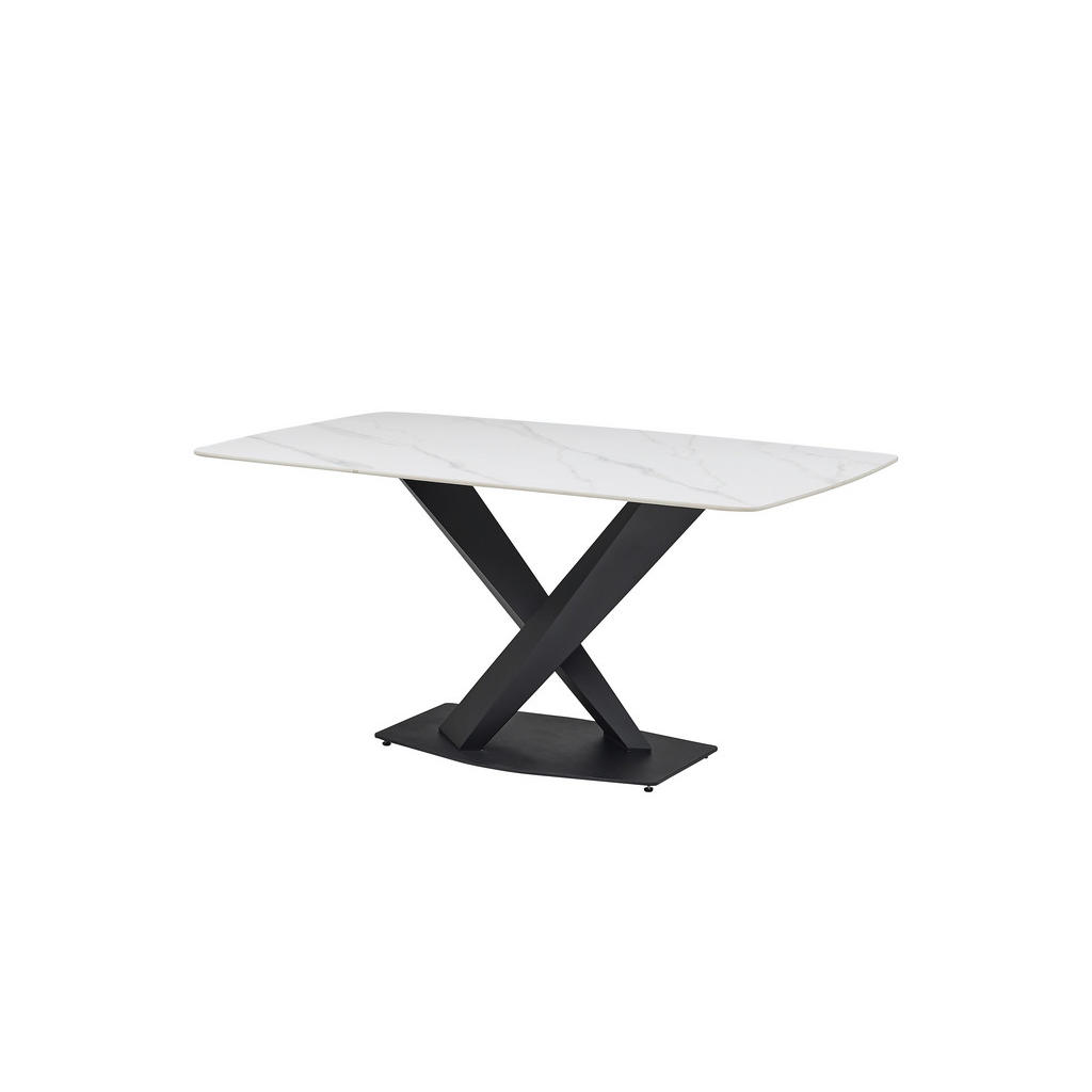 Jedilna miza navdušuje z vrhunsko kombinacijo modernega dizajna in praktične funkcionalnosti. Njena mizna plošča je izdelana iz 12 mm debele keramične plošče z mat marmornim vzorcem, ki je izjemno odporna na praske, vročino in madeže. Ta naraven, a hkrati minimalističen videz daje prostoru pridih elegance in svežine. Stabilnost in trdnost zagotavlja robustno podnožje v obliki črnega kovinskega X-okvira s poudarjeno talno ploščo, ki je prašno barvan za dolgo življenjsko dobo brez rje. Miza je primerna za vsakodnevno uporabo v jedilnici ali kuhinji, saj njena kakovostna izdelava omogoča dolgoletno brezskrbno uporabo. Zaradi svojih dimenzij in vzdržljive površine je odlična izbira za družinske obroke in druženja. Ključne prednosti: Kakovostna keramična plošča (Fine Bone China) z marmornim vzorcem v mat izvedbi – odporna in enostavna za vzdrževanje Robustno kovinsko podnožje v obliki X-okvira z dodatno talno ploščo za večjo stabilnost Debelina plošče 12 mm zagotavlja vzdržljivost in kakovosten videz Moderna kombinacija črne in bele barve za sodoben in elegantni izgled prostora Enostavna montaža in vzdrževanje Lastnosti: Dimenzije (DxŠxV): 180 x 90 x 75 cm Material mizne plošče: keramična plošča, Fine Bone China, mat marmornati dekor Debelina mizne plošče: 12 mm Material podnožja: kovina (železo), prašno barvano, črna barva Oblika mize: pravokotna Podnožje: X-oblika z dodatno talno ploščo za stabilnost Nosilnost: do 60 kg Pakiranje: v kartonski embalaži Dostava: primerna za prevoz z manjšim kombijem Vzdrževanje: enostavno, priporočeno vlažno brisanje Montaža: preprosta montaža, izdelek dobavljen razstavljen Uporaba: notranji prostori (indoor)