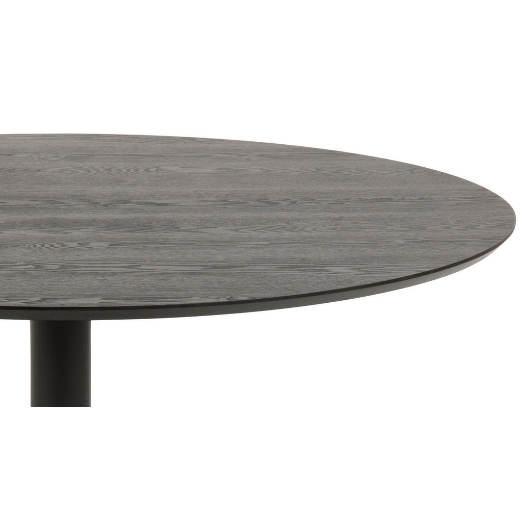 Blagovna znamka Mid.You obsega širok spekter pohištva, dodatkov za pohištvo in tekstila. Naj gre za dnevno sobo, otroško sobo, spalnico ali jedilnico, prav gotovo boste našli izdelke, ki so zelo estetsko dovršeni, a zato nič manj funkcionalni. Slogan “Sredi vašega doma.” se zaradi raznolike in kvalitetne ponudbe znamki resnično poda. Okrogla jedilna miza premera 110 cm, primerna za 3-4 osebe, je odlična izbira za sodobne jedilnice in kuhinje. Mizna plošča, debela 18 mm, odporna proti svetlobi, v kombinaciji s stabilno kovinsko nogo izdelku zagotavljata dolgo življenjsko dobo. Vtis dopolnita razmeroma nizka cena in eleganca. Ključne prednosti: Izredno visoka maksimalna obremenitev, ki sega do 100 kg. Kvalitetni materiali: Kombinacija kovine in furmiranega lesa izdelku ob eleganci zagotavlja tudi dolgo življenjsko dobo. Odpornost proti svetlobi poskrbi, da bo miza dolgo videti kot nova. Lastnosti: Dimenzije: Premer 110 cm, višina 74 cm Barva: Črna, barve jeseni Debelina mizne plošče: 18 mm Oblika nog: Okrogla cev Maks. obremenitev: Pribl. 25 kg Materiali: Imitacija lesa (MDF), furnirani, delno masivni les. Nerjaveče, prašno lakirano jeklo.