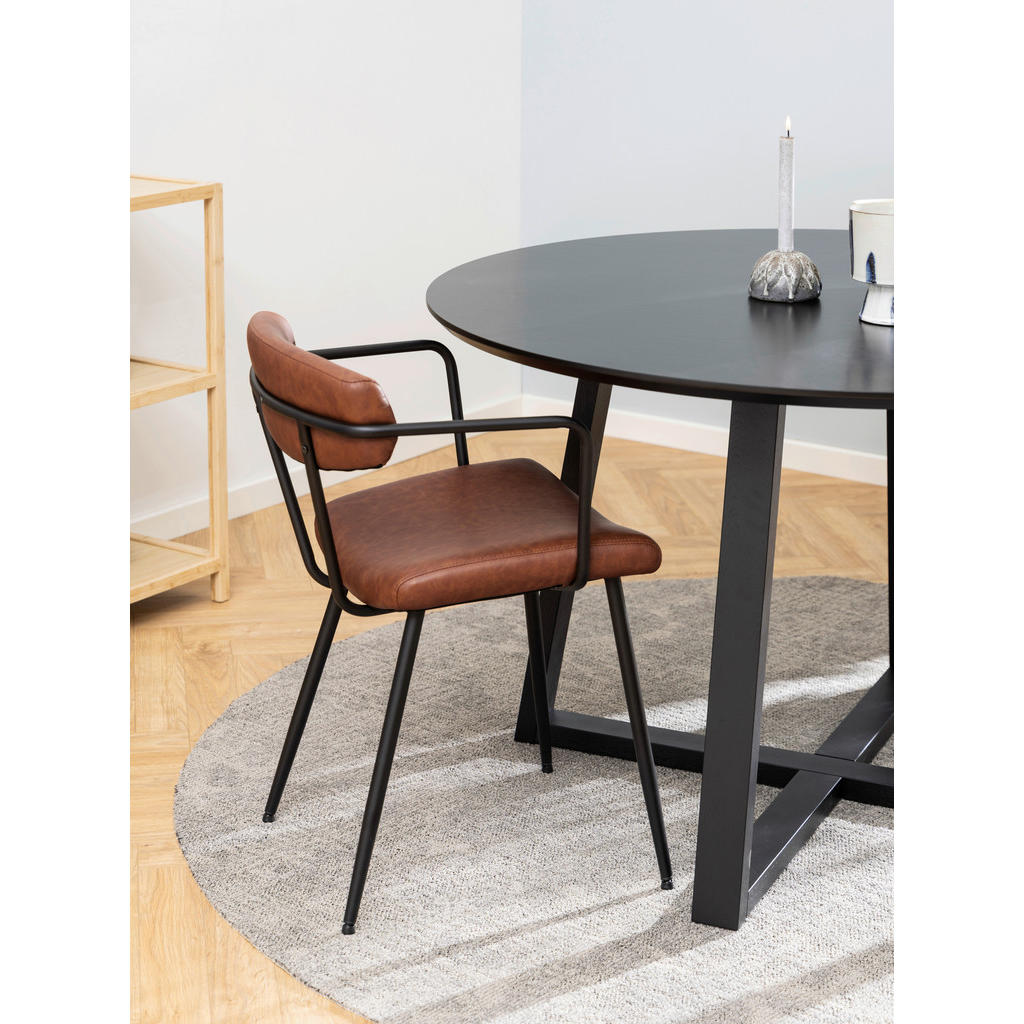 Jedilna miza je odličen primer sodobne elegance, ki bo v vsakem prostoru pustila močan vtis. Njena izčiščena okrogla oblika in črna barva sta popoln spoj minimalizma in prestiža. Izdelana je iz kakovostnih materialov – furniranega lesa (hrast) in MDF-ja, z elegantno lakirano površino, ki ji daje brezčasen značaj. Stabilna sredinska noga v eko usnju PU poskrbi za prostorsko učinkovitost, saj omogoča več svobode za sedenje okoli mize. Miza je idealna za intimne večerje, družinska srečanja ali elegantne zajtrke, kjer želite ustvariti vzdušje brez pretiranih dodatkov. Njena vsestranska črna barva pa omogoča enostavno kombinacijo s katerimikoli stoli in dekorjem. Ključne prednosti: Sodoben dizajn v črni barvi – brezčasen in stilsko dovršen Okrogla oblika – spodbuja interakcijo in povezanost ob jedi Stabilna sredinska noga – več prostora za noge in stole