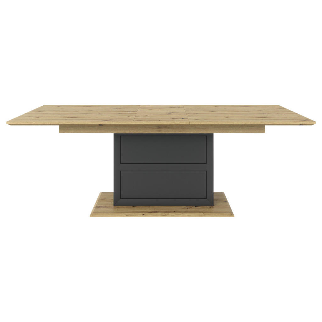 Jedilna miza blagovne znamke Hom’in združuje sodobno estetiko z visoko funkcionalnostjo, kar jo postavlja v sam vrh izbire za vsak dom. Zasnovana v toplem dekorju artisan hrasta, odlično posnema videz naravnega lesa in se brez težav vključi v različne stile notranje opreme – od modernega do rustikalnega. Njena glavna odlika je sinhroni izvlek, ki omogoča hitro in preprosto podaljšanje površine s 180 cm na 220 cm, brez napora in z eno samo potezo. V središču mize stoji stabilna osrednja stebričasta noga na kovinski talni plošči, kar ne le vizualno izstopa, ampak tudi poveča uporabnost prostora okoli mize. Vse to dopolnjuje kakovostna izdelava iz MDF-ja in površina z zaščitno dekor folijo, ki omogoča enostavno čiščenje in dolgo življenjsko dobo. Miza je idealna za tiste, ki iščejo zanesljivost, dizajn in uporabnost v enem. Ključne prednosti: Moderen videz v toplem artisan hrast dekorju Sinhroni izvlek za hitro razširitev mize do 220 cm Stabilna osrednja noga s kovinsko osnovo – več prost