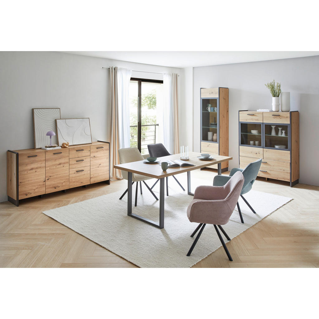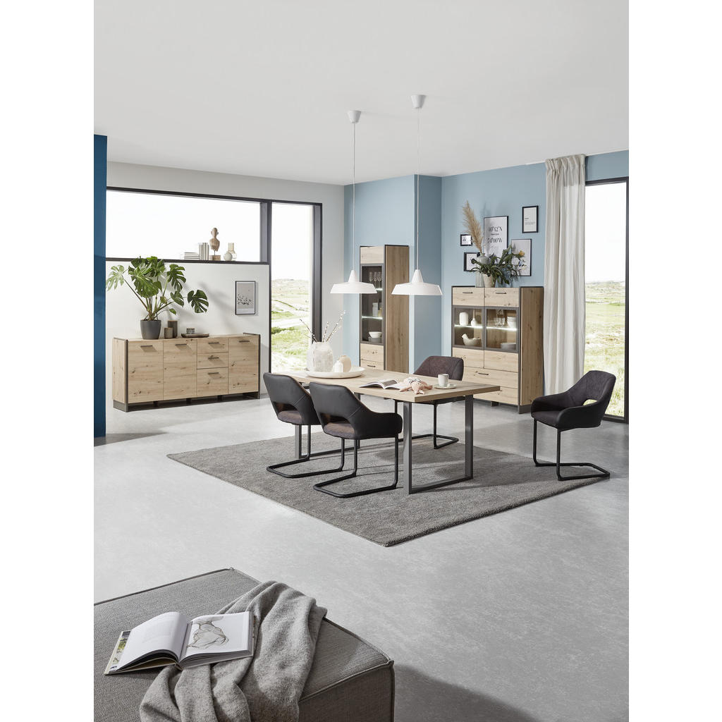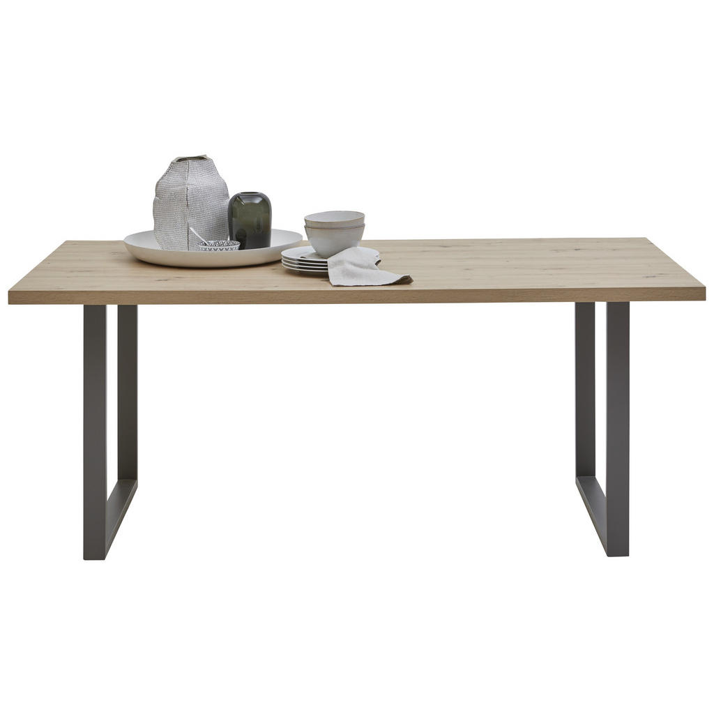 Jedilna miza je sodobna in stilsko dovršena rešitev za vsak dom, ki želi združiti preprostost in funkcionalnost. Njena moderna pravokotna oblika z dimenzijami 180 x 90 cm nudi dovolj prostora za druženje in obroke z družino ali prijatelji. Miza je izdelana iz kakovostnega lesnega materiala z dekor folijo v odtenku Artisan hrasta, ki daje naraven videz lesa brez vzdrževanja masivnega lesa. Stabilne noge v moderni U-obliki iz mat sivega kovinskega materiala zagotavljajo trdno oporo in industrijski pridih, ki se prilega različnim notranjim slogom. Miza je dobavljena razstavljena, montaža pa zahteva nekaj ročnih spretnosti, kar je poplačano s kakovostjo in trpežnostjo izdelka. Enostavno vzdrževanje s suhim brisanjem omogoča, da bo miza dolgo ohranjala svoj čudovit videz. Ključne prednosti: Moderna pravokotna oblika dimenzij 180 x 90 cm, primerna za družine Plošča iz lesenega materiala z dekor folijo Artisan hrasta za naraven videz in vzdržljivost Stabilne noge v U-obliki iz mat sivega kovinskega materiala Enostavno vzdrževanje – dovolj je suho brisanje