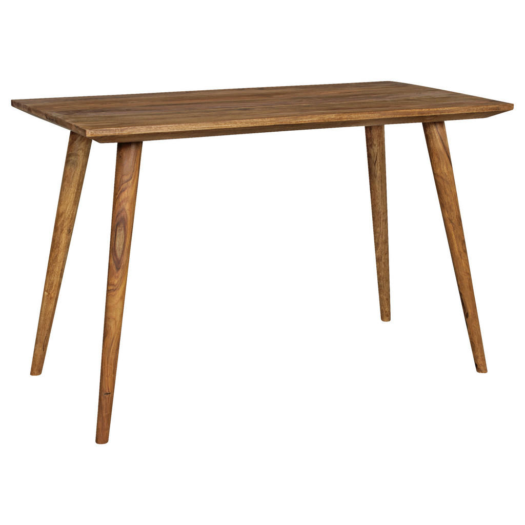 Jedilna miza iz masivnega lesa je popolna izbira za vse, ki cenijo naravno lepoto in trajnostno kakovost. Vsaka miza je izdelana iz pravega indijskega Sheesham lesa, ki se ponaša z edinstveno strukturo in toplimi, naravnimi toni, ki prostoru dodajo pristno domačnost in eleganco. S kompaktno velikostjo 120 x 60 x 77 cm se enostavno prilega tako manjšim kot večjim prostorom, zato je idealna za jedilnice, kuhinje ali manjše pisarne. Njen čvrst masiven les in konične noge poskrbijo za stabilnost in dolgo življenjsko dobo, obenem pa je površina zaščitena z vodoodbojnim lakom, ki ohranja naraven videz lesa ter omogoča enostavno čiščenje. Zaradi razstavljenega pakiranja in enostavnega transporta je postavitev mize pri vas doma hitra, potrebnih pa je nekaj ročnih spretnosti za montažo. Če iščete trajnostno, estetsko in kakovostno mizo, ki bo vašemu domu vdihnila naraven čar, je miza MID.YOU prava izbira. Ključne prednosti: Izdelana iz 100 % masivnega indijskega Sheesham lesa za dolgo življenjsko dobo in edinstven videz Površina je zaščitena z vodoodbojnim lakom, ki omogoča enostavno čiščenje in ohranja naravni lesni vzorec Kompaktne dimenzije 120 x 60 x 77 cm,