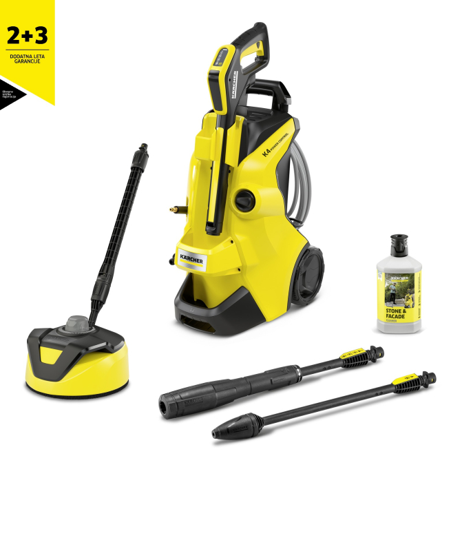 Visokotlačni čistilnik K 4 Power Control Flex Home omogoča neverjetno enostavno čiščenje vsake površine pod pravim pritiskom. In zahvaljujoč aplikaciji Kärcher Home & Garden je iskanje pravega tlaka zelo enostavno. Svetovalec podpira uporabnike s praktičnimi nasveti za vsako situacijo čiščenja in opravilo čiščenja – za popolne rezultate čiščenja. Za maksimalen nadzor je mogoče nivo tlaka enostavno prilagoditi z obračanjem pršilne cevi ali preveriti na sprožilni pištoli G 160 Q Power Control. K 4 Power Control Flex navdušuje tudi s sistemom detergentov Kärcher Plug ‘n’ Clean za enostavno menjavo detergentov, visokotlačno cevjo PremiumFlex za dodatno udobje, teleskopskim ročajem za enostaven transport, sistemom Quick Connect za prihranek časa in truda s klikanjem visokotlačne cevi v napravo in iz nje, sprožilno pištolo in parkirni položaj, da zagotovite dostop do dodatkov v vsakem trenutku. Home Kit zagotavlja čiščenje večjih površin okoli doma brez brizganja in je opremljen s talno šobo T 5 in 1 litrom čistila za kamen in fasado.