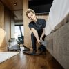 Robusten, vzdržljiv, učinkovit: Kärcherjev čistilec s razpršilno-ekstrakcijo Puzzi 8/1 impresivno očisti oblazinjeno pohištvo in odstrani madeže s tekstilnih površin z izjemnimi in higieničnimi rezultati čiščenja ter visoko učinkovitostjo. Kompaktni stroj za ekstrakcijo s pršenjem razprši čistilno raztopino globoko v tekstilna vlakna in jo nato ponovno odstrani z odstranjeno umazanijo. Ta odlična zmogljivost povratnega sesanja zagotavlja tudi hitro sušenje in pomeni, da je tekstilne površine mogoče hitro ponovno uporabiti – idealno za visoke zahteve strokovnjakov za čiščenje v hotelskem in gostinskem sektorju ali pri čiščenju notranjosti vozil. Uporabite lahko tudi standardno, zelo kratko šobo za oblazinjenje za priročno, ergonomsko čiščenje ozkih prostorov. Zahvaljujoč zelo nizki teži in ergonomskemu ročaju za prenašanje lahko čistilec z razpršilno ekstrakcijo preprosto prenašate z eno roko. Udobje za uporabnika povečujejo tudi veliki gumbi, ki jih je mogoče upravljati z roko ali nogo. Pokrov aparata in ročna šoba sta prozorna za boljši pregled nad umazano vodo.