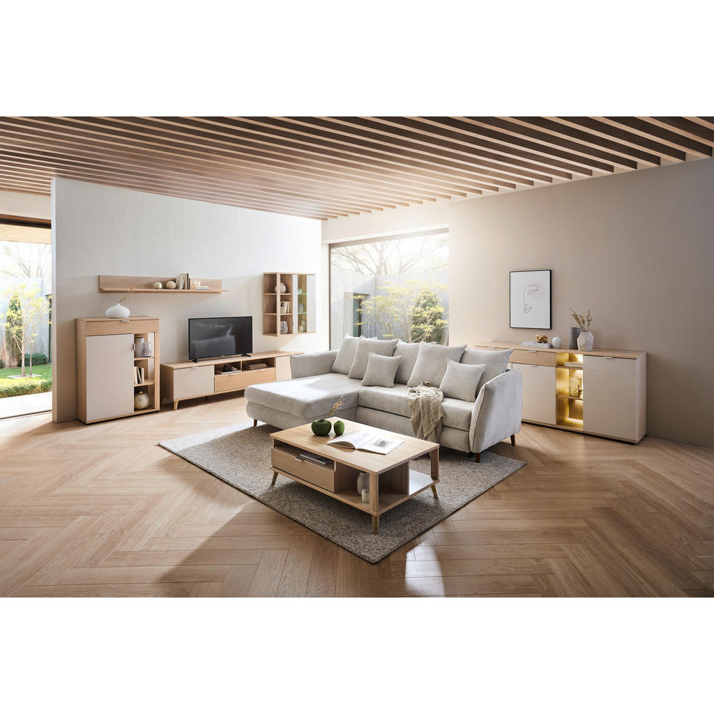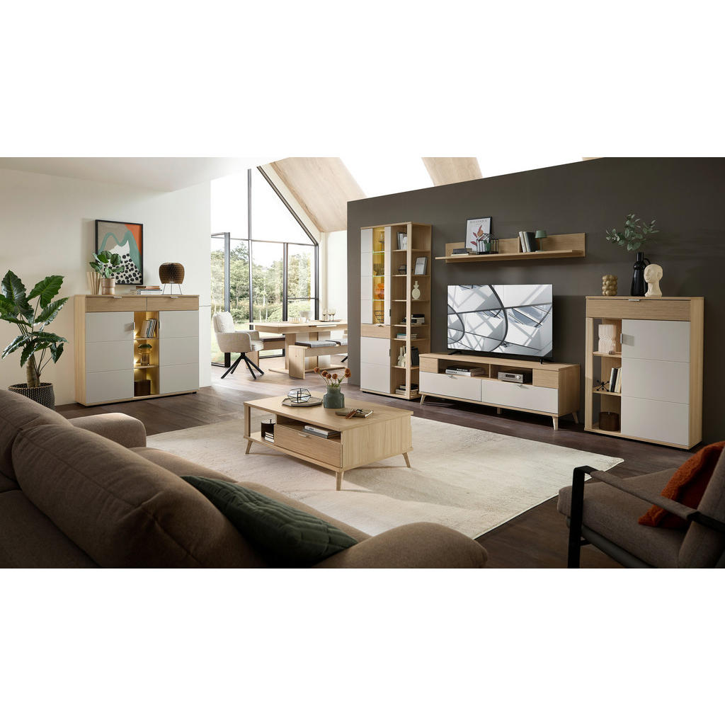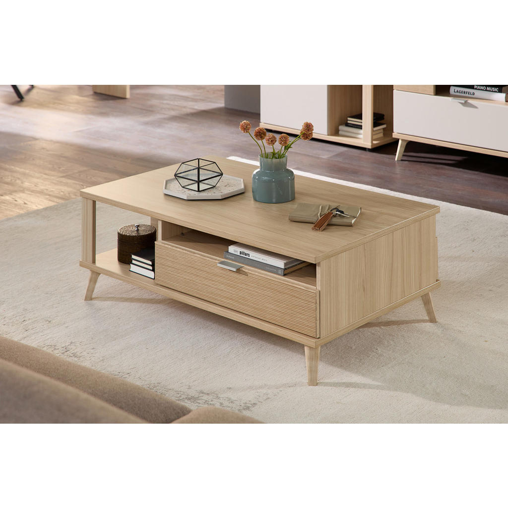Klubska miza je izjemno vsestranski kos pohištva, ki se lahko uporablja v različnih prostorih in za različne namene. V dnevni sobi je idealna kot osrednji element, kjer lahko odlagate pijače, prigrizke, knjige ali daljinske upravljalce, ter ustvarite prostor za sproščeno druženje. Zaradi svoje prostornosti je odlična tudi za razstavljanje dekorativnih predmetov, svečnikov ali rastlin, ki bodo prostoru dodali osebni pečat. Poleg tega je lahko tudi funkcionalna delovna površina, kjer potrebujete dodatni prostor za računalnik ali druge nujne pripomočke. V kombinaciji z udobnimi sedeži ali naslanjači je lahko popolna dopolnitev za uživanje v najljubših filmih ali knjigah. Blagovna znamka HOM’IN združuje sodobne oblikovalske trende in praktične rešitve, zato je ta klubska miza popolna izbira za vse, ki cenijo stil in funkcionalnost. Z njo bo vaš dom zasijal v popolni harmoniji ter elegantno povezal prostor v usklajeno celoto. Ključne prednosti: Sodoben dizajn v imitaciji hrasta. Prostorna površina omogoča dovolj odlagalnega prostora. Kakovostni materiali za dolgo obstojnost. Dva predala z mehkim in tihim zapiranjem. Lastnosti: Širina/višina/globina: 110/40/65 cm Barva: