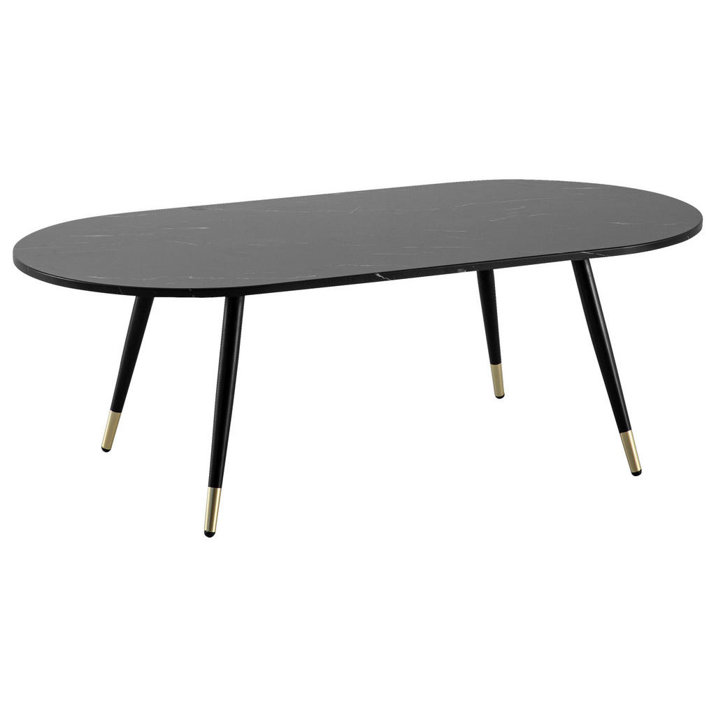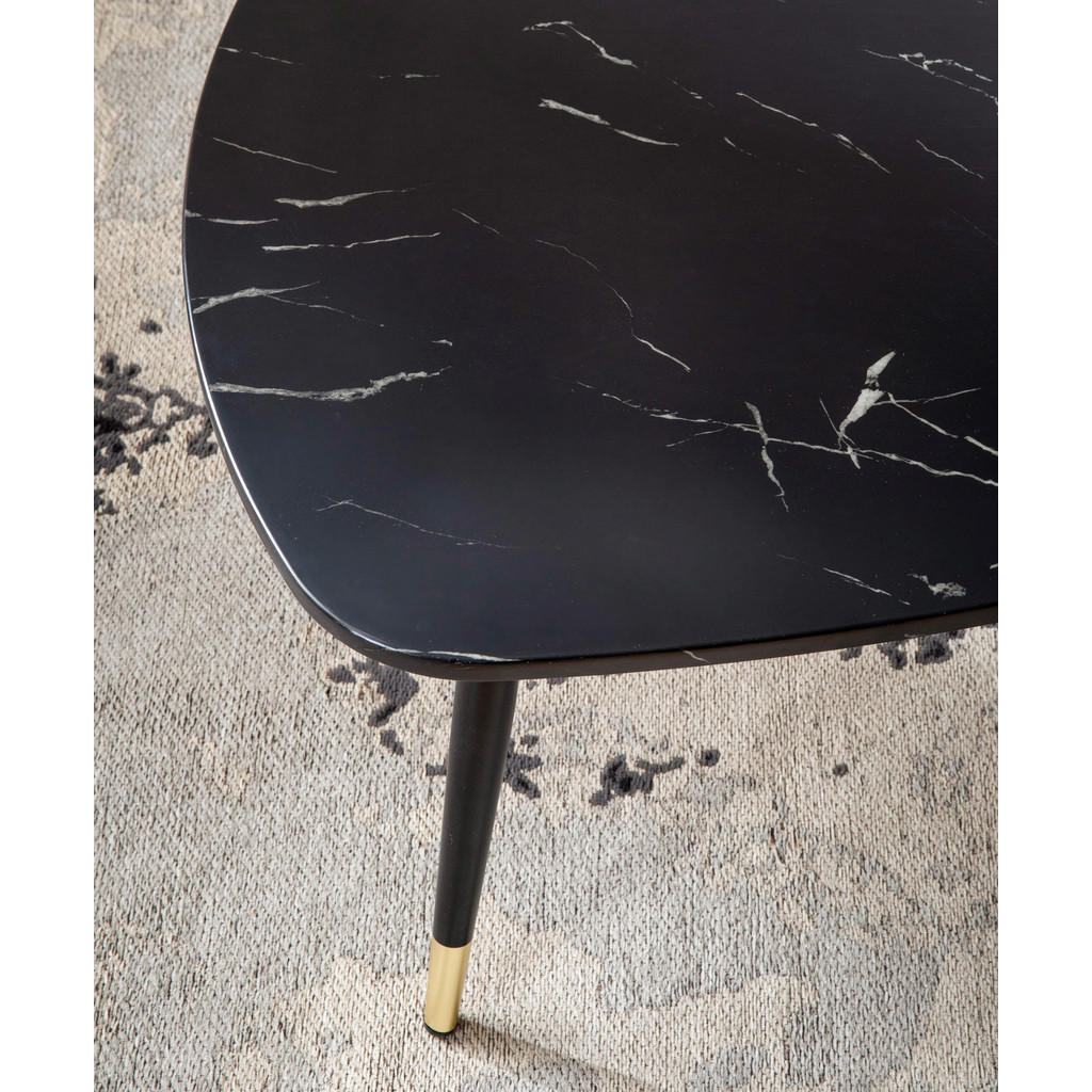 S to skrbno oblikovano klubsko mizico boste v svoj dom vnesli pravi občutek prefinjenosti. Črn dizajn z videzom marmorja ustvarja prijetno ravnovesje med drznim slogom in eleganco, ki se brez težav ujame s številnimi ambienti – od sodobnega in skandinavskega do rustikalnega ali vintage. Mizica se bo odlično podala ob naslanjač za serviranje kave, čaja ali slaščic, v predsobo za odlaganje ključev, denarnice ali telefona, ali pa v spalnico kot priročen kos za odlaganje in shranjevanje vaših osebnih predmetov. Ključne prednosti: Večnamenska uporaba: Idealna za dnevno sobo, predsobo ali spalnico. Estetska vsestranskost: Črn dizajn z videzom marmorja omogoča preprosto kombiniranje z različnimi interierji. Eleganten videz: Združuje občutek prefinjenosti in elegance. Praktična površina: Dovolj prostorna za serviranje pijače, odlaganje knjig ali dekorativnih predmetov. Lastnosti: Dolžina/širina/višina: 90/60/41 cm Barva: črna (videz marmorja) Material: leseni material (prevlečeno s folijo) Noge: železo, lakirano, črna in zlata barva Maksimalna obremenitev: približno 30 kg