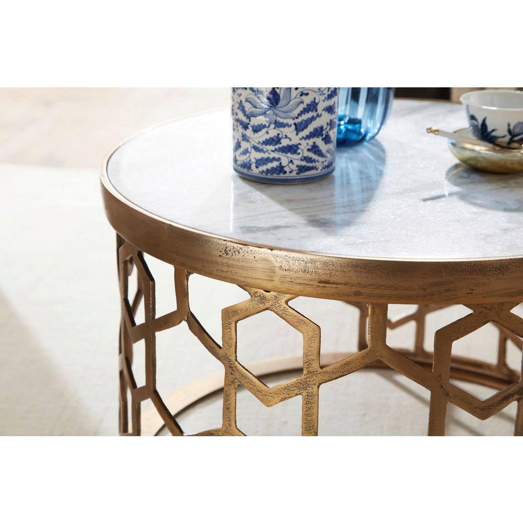Včasih je dovolj en sam kos pohištva, da popolnoma preobrazi prostor. Nova klubska mizica da lahko vašemu ambientu tisto piko na i – z novim občutkom svežine in elegance. Če iščete nekaj, kar bo v vaš dom vneslo prefinjenost, hkrati pa ostalo seveda funkcionalno, potem vas bo ta čudovita mizica naravnost očarala. Z elegantnim dizajnom v zlati barvi ter videzom marmorja v prostor prinaša pridih razkošja, a hkrati ostaja dovolj nežna, da se lepo poveže z različnimi prostori – od spalnic, dnevnih sob, bralnih kotičkov do pisarn. Odlično se poda ob mehko žametno sedežno garnituro ali ob stranski fotelj. Je idealna spremljevalka za popoldanski čaj, jutranjo kavo ali prijetno druženje ob sladicah. Prav tako jo lahko izkoristite za sveže cvetje, dišeče sveče ali odlaganje knjig. Ključne prednosti: