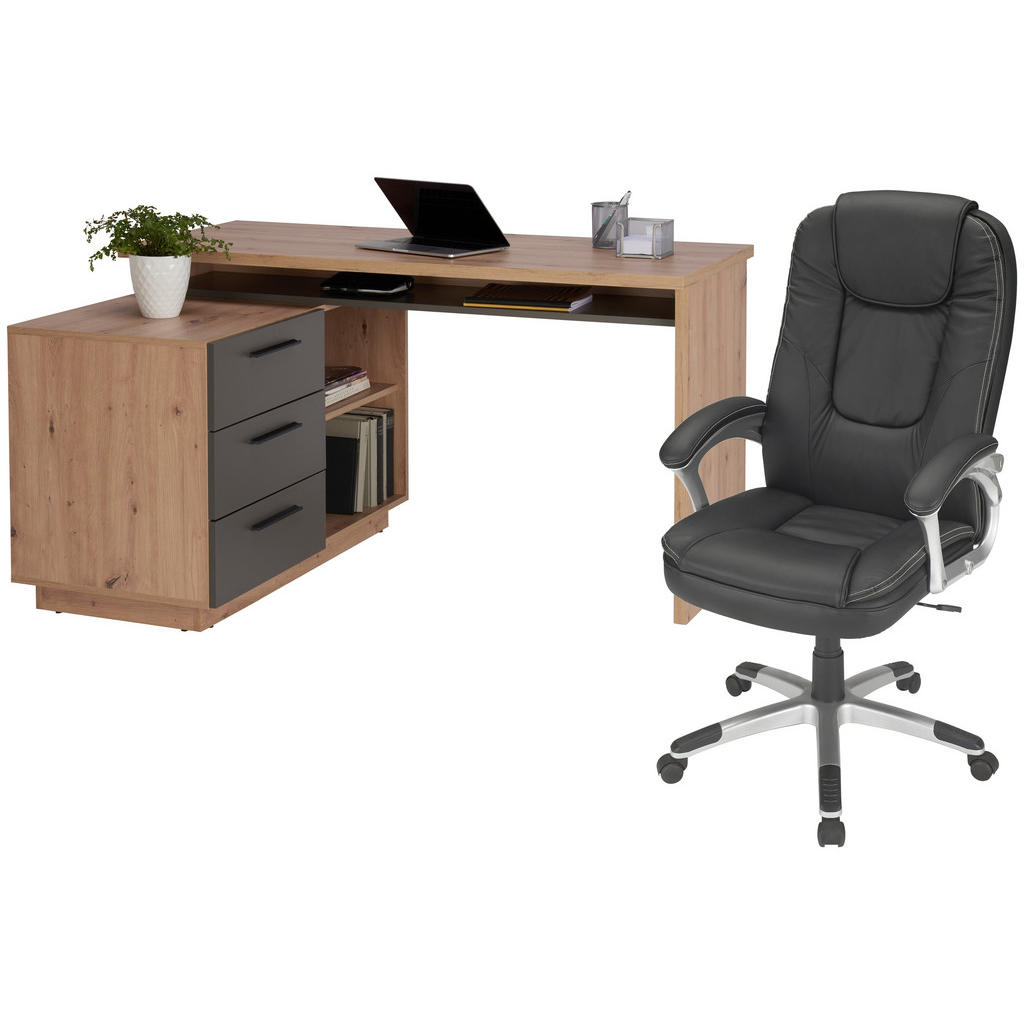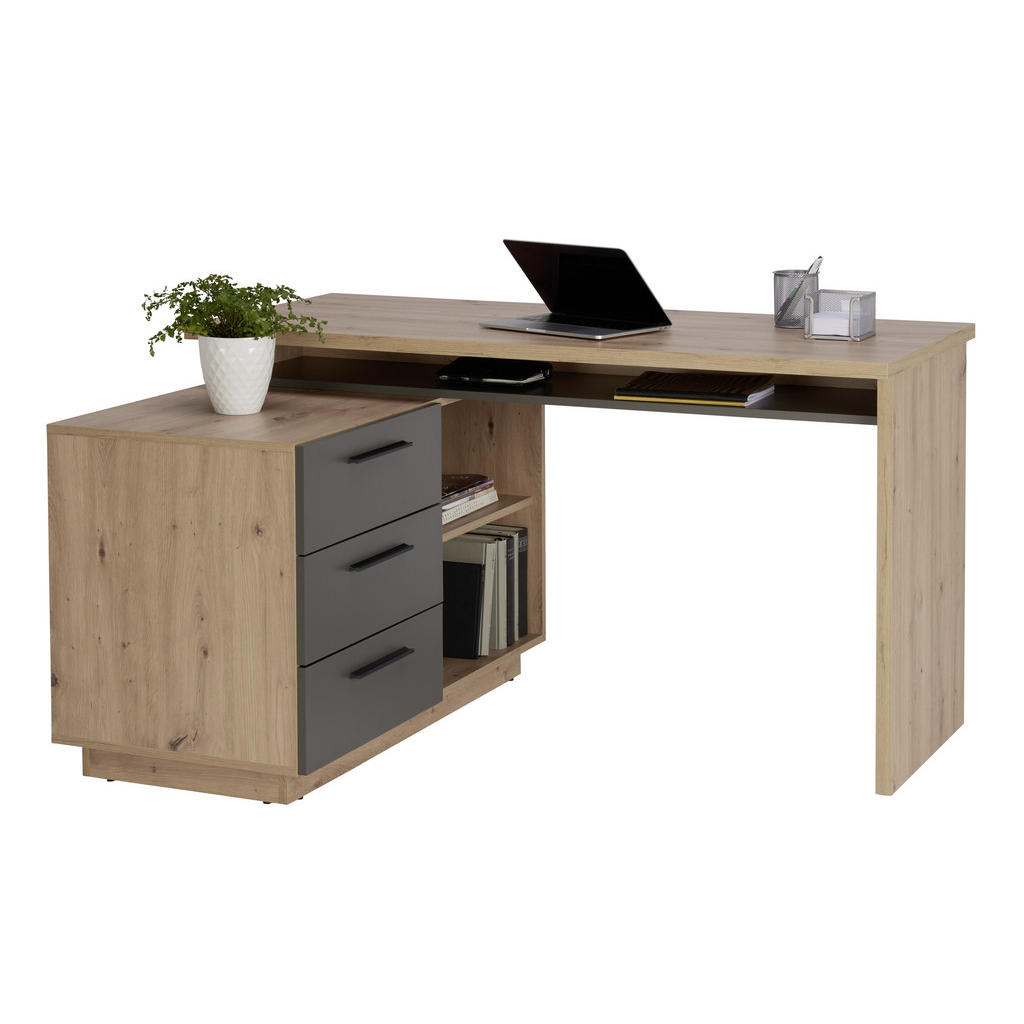 KOMBINIRANA PISALNA MIZA leseni material antracit, hrast artisan