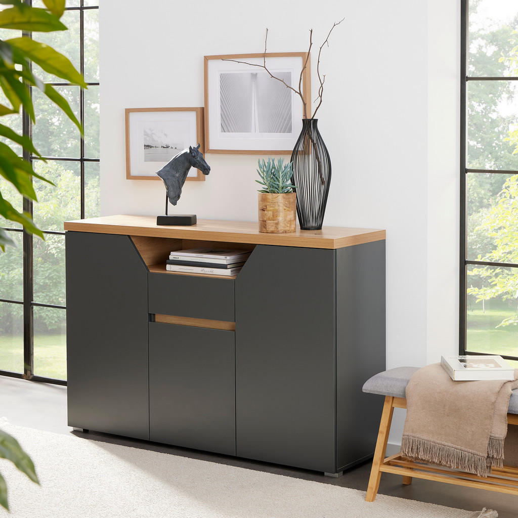 KOMODA, antracit, hrast artisan