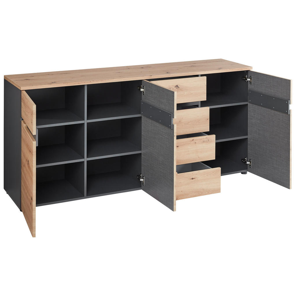 ŠIROKA KOMODA, barve grafita, hrast artisan