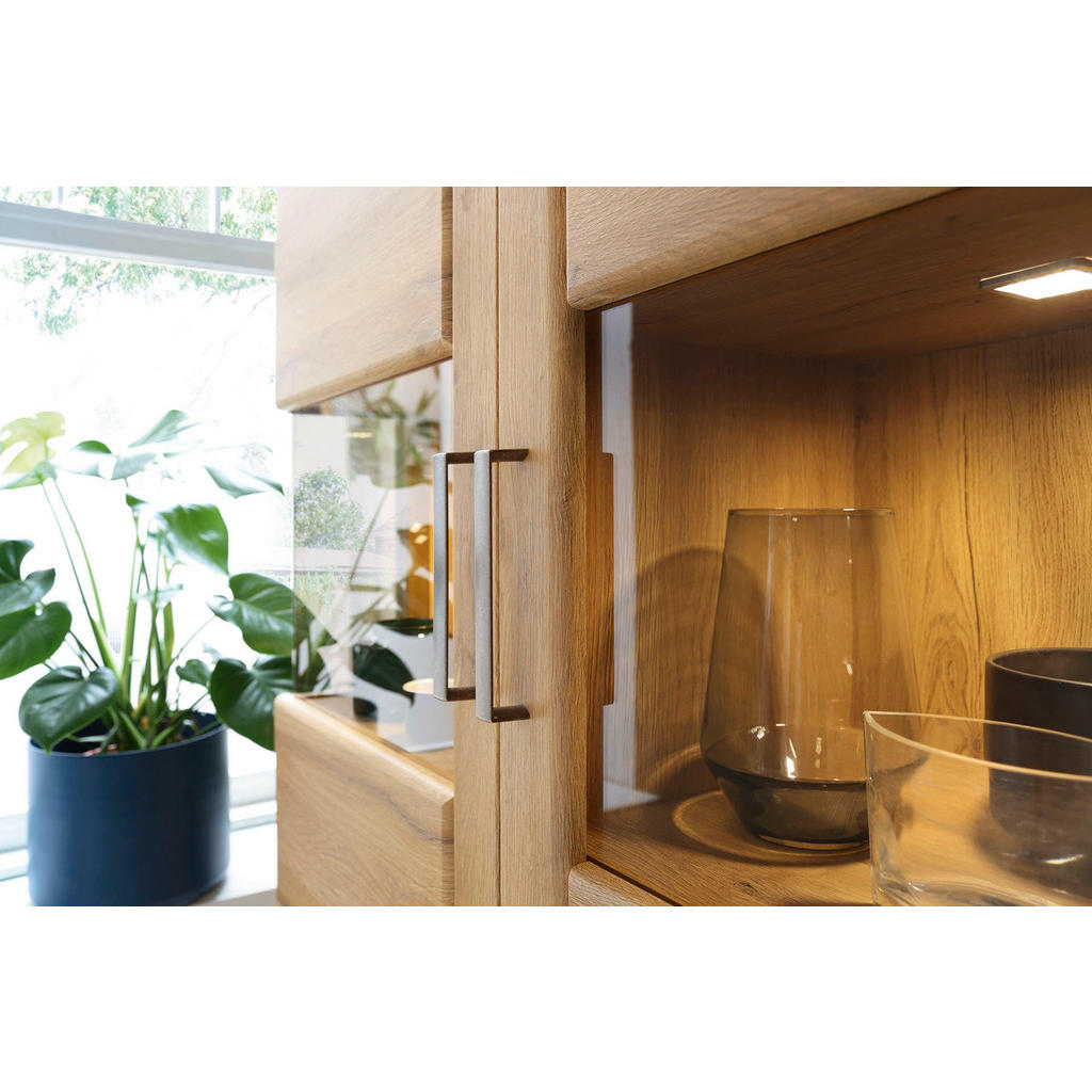 Blagovnaznamka Landscapese ponaša s prvinsko filozofijo, o čemer priča že njen slogan(“Bivati tako kot nekdaj.”) seveda pa tudi njeni izdelki. Ti sovelikokrat narejeni iz pravega, masivnega lesa ali kvalitetneimitacije lesa in obsegajo pohištvo za dnevne sobe, jedilnice,spalnice in predsobe, pa tudi funkcionalne dodatke za dom, denimokrožnike, sklede, zavese ter svetila. Minimalistična in trpežna komoda iz kvalitetne imitacije lesa tople, naravne barve kombinira s črnimi ročaji. Ta kontrast naredi iz izdelka več od zgolj funkcionalnega kosa pohištva, kljub temu pa je komoda prostorna ter funkcionalna: 5 nastavljivih polic omogoča shranjevanje številnih potrebščin, zaradi nevtralne zasnove pa se izdelek poda širokemu spektru sodobnih interierjev. Ključne prednosti: Nastavljive police omogočajo fleksibilno in individualizirano organizacijo prostora. Kompaktne dimenzije, zaradi katerih je komoda primerna tako za velike kot majhne prostore. Kvalitetni materiali izdelku zagotavljajo dolgo življenjsko dobo. Lastnosti: Dimenzije: Širina 156,8 cm, višina 86 cm, globina 40,9 cm