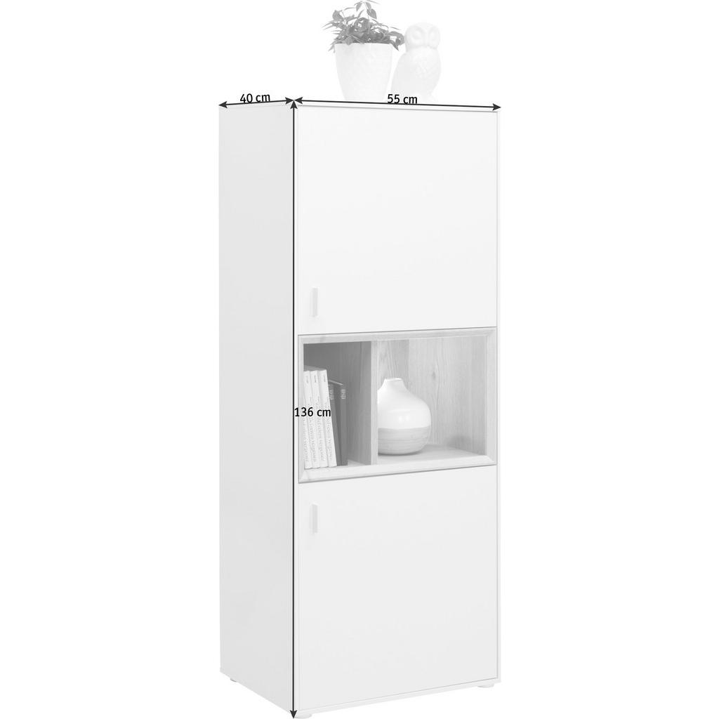 Zablagovno znamko Hom`inje značilen minimalističen dizajn s svetlimi, prijaznimi barvami.Namenjena je predvsem mladim in nudi ogromno odličnih izdelkov zaopremljanje prvega ali študentskega stanovanja. Pohištvo jefleksibilno in ga je mogoče medsebojno kombinirati, zajema pa širokspekter prostorov, med drugim dnevne sobe, jedilnice, pisarne terspalnice. Trpežna in elegantna komoda se zaradi nevtralne bele barve lepo poda večini sodobnih interierjev, zaradi kompaktnih dimenzij pa je primerna tako za velike kot majhne prostore. 2 odprta predala in 2 nastavljivi polici nudijo veliko prostora za shranjevanje najrazličnejših potrebščin, kvalitetna imitacija lesa pa izdelku zagotavlja dolgo življenjsko dobo. Ključne prednosti: Enostavno vzdrževanje: Za čistočo zadošča občasno brisanje s suho krpo. Sistem za mehko in tiho zapiranje hrup ohranja na minimumu. Nastavljivi polici omogočata fleksibilno in individualizirano organizacijo prostora. Lastnosti: Dimenzije: Širina 55 cm, višina 136 cm, globina 40 cm Barva: Bela. barve hrasta Maks. obremenitev: Pribl. 20 kg Materiali: Imitacija lesa (iverna plošča), umetna masa Površina: Mat, melamin