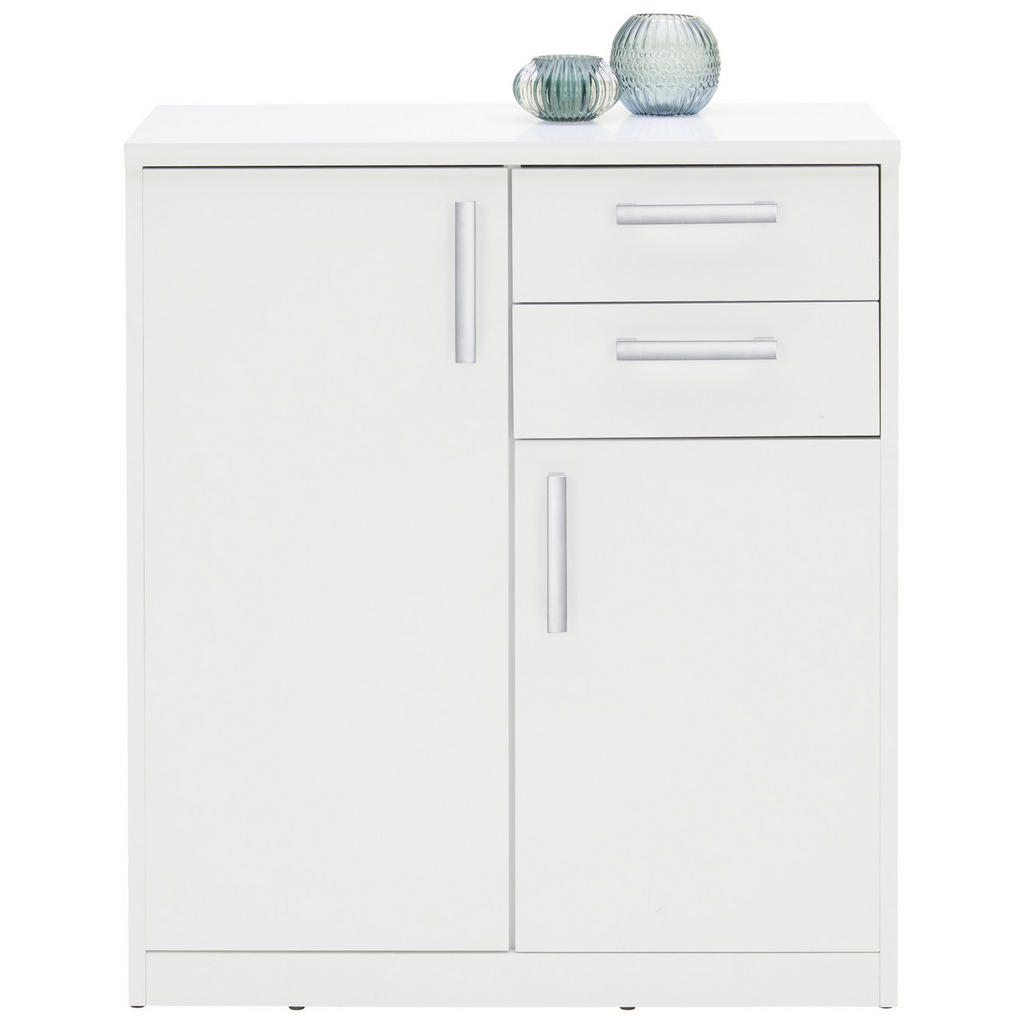 Blagovnaznamka Xoranudistanovanjsko pohištvo: ne jamči samo trenutne, temveč tudidolgoročno kakovost. Njena izredno široka ter fleksibilna ponudbaobsega dnevne sobe, jedilnice, spalnice, predsobe ter kopalnice in bozagotovo zadostila vsakomur, ki sestavlja prvi dom. Elegantna in funkcionalna komoda v nevtralni beli barvi se zaradi razmeroma majhne velikosti in minimalistične zasnove poda večini sodobnih notranjih prostorov. 3 nastavljive police ter 2 predala nudijo precej prostora za shranjevanje najrazličnejših potrebščin, vtis pa dopolni dejstvo, da je izdelek na voljo v različnih barvah: gotovo boste našli tisto, ki ustreza vašemu slogu. Ključne prednosti: Enostavno vzdrževanje: Za čistočo zadošča občasno brisanje s suho krpo. Nastavljive police omogočajo individualizirano in fleksibilno organizacijo prostora. Kompaktne dimenzije naredijo izdelek primeren tako za velike kot majhne prostore. Lastnosti: Dimenzije: Širina 72 cm, viššina 84 cm, globina 36 cm Barva: Bela, srebrne barve, črna Materiali: Imitacija lesa (iverna plošča, folija z dekorjem), umetna masa