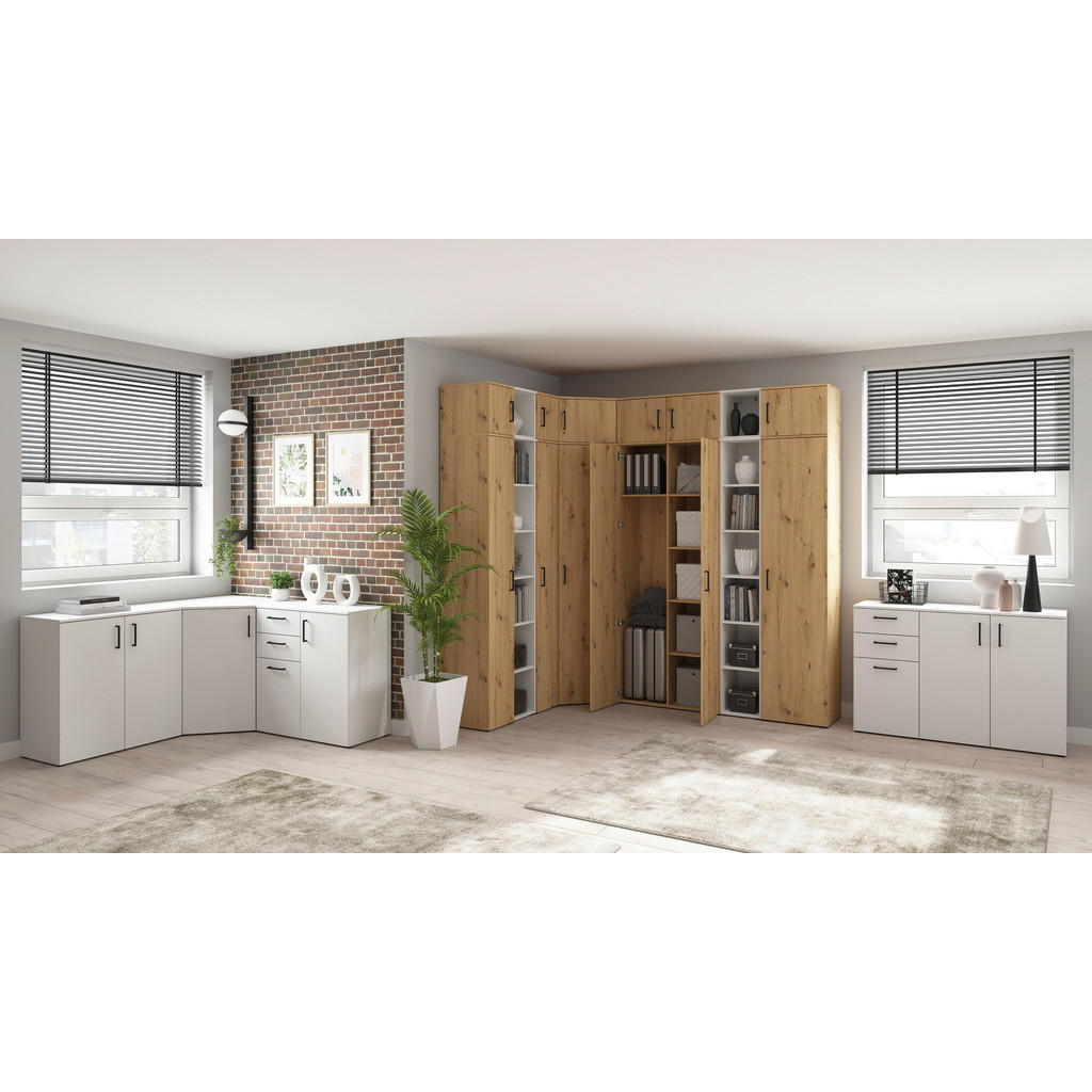 Ja, komode so zelo uporaben in praktičen kos pohištva, s katerim enostavno ne morete zgrešiti, temveč lahko le pridobite! Komoda blagovne znamke Carryhome vam bo ponudila dodaten prostor za shranjevanje, ki je, kot vsi vemo, vedno zaželen, hkrati pa bo vam bo ponudila prostor tudi za dekorativne dodatke, svečke ali družinske fotografije. Komoda je opremljena z dvema vrati ter dvema prostornima policama, na kateri lahko pospravite knjige, oblačila, posodo, igrače ali druge osebne predmete. Prav vam bo prišla tako v spalnici, kot v dnevni sobi, lahko pa jo namestite tudi v pisarno ali otroško sobo. Komoda ni le prostorna in praktična, temveč tudi zelo kakovostna. Izdelana je iz trpežne iverne plošče, minimalističen videz v beli barvi pa poskrbi, da se bo odlično zlila z vsakim interierjem. Ključne prednosti: Kakovostna izdelava: izdelana iz trpežne iverne plošče z dolgo življenjsko dobo. Enostavna montaža: priložena navodila omogočajo hitro in brezskrbno sestavljanje. Funkcionalna zasnova: omogoča optimalno izrabo prostora ter učinkovito organizacijo oblačil, dodatkov in drugih predmetov. Preprost dizajn: čista bela barva se zlahka zlije z različnimi slogi notranje opreme in omogoča enostavno kombiniranje z drugim pohištvom. Lastnosti: Širina/višina/globina: 80/83/40 cm Material: iverna plošča Material nog/ročajev: umetna masa Barva: