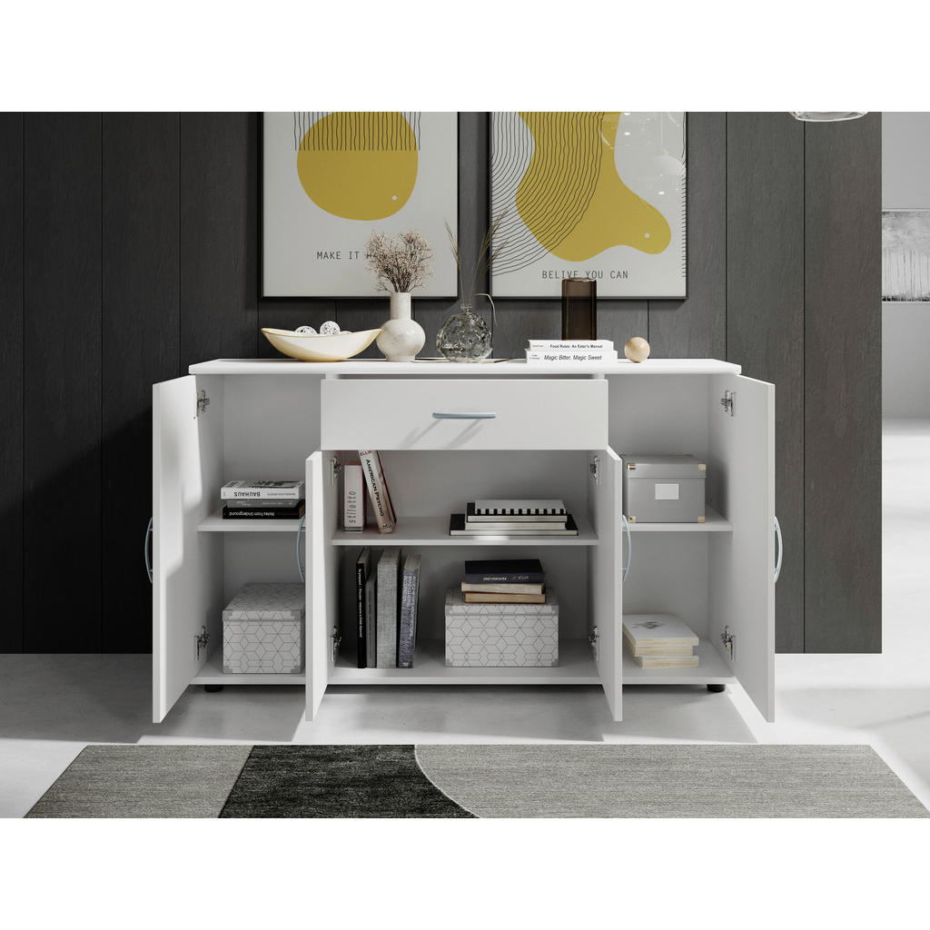 Komoda, ki se poda v številne sloge domov, je del blagovne znamke Boxxx. Prepričala pa bo tudi vas? Zakaj? Klasičen, a dovršen dizajn v beli barvi doda občutek minimalizma in svežine, les pa poskrbi za trpežnost in dolgo življenjsko dobo komode. Zaradi svoje dimenzije je primerna tudi za manjše prostore, a vseeno nudi veliko prostora za shranjevanje izbranih predmetov. Zaradi preprostosti linij in klasičnega dizajna lahko komodo kombinirate v različne interierje. Dimenzije: 118x70x30 cm