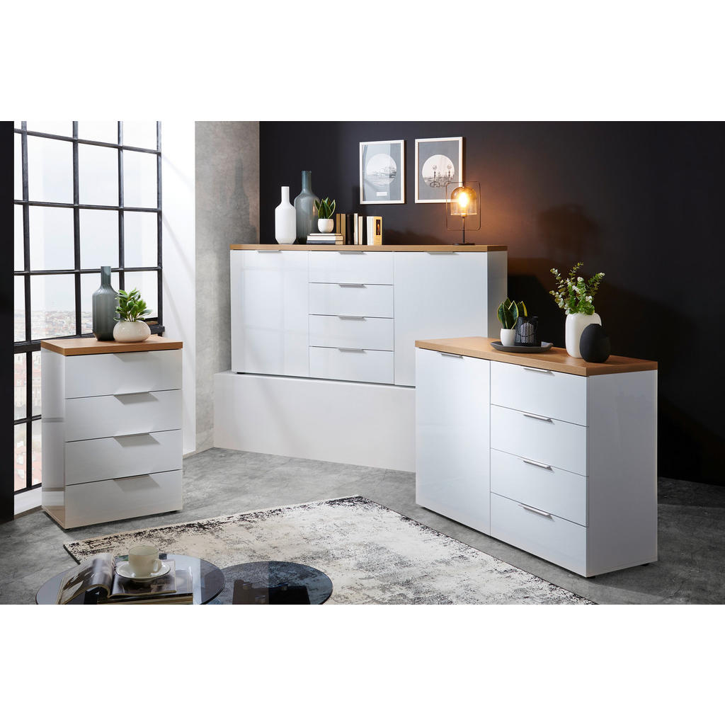 ŠIROKA KOMODA, bela, barve hrasta