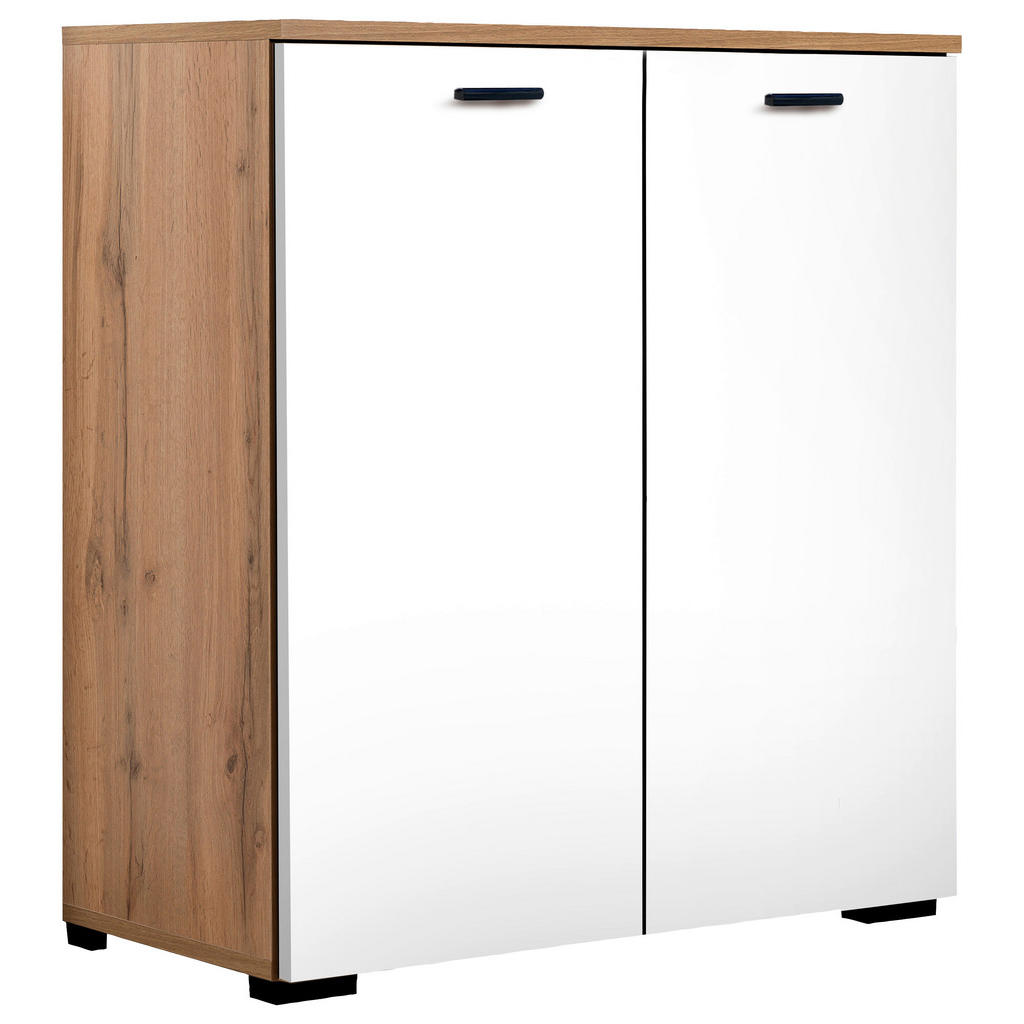 Blagovnaznamka Xoranudistanovanjsko pohištvo: ne jamči samo trenutne, temveč tudidolgoročno kakovost. Njena izredno široka ter fleksibilna ponudbaobsega dnevne sobe, jedilnice, spalnice, predsobe ter kopalnice in bozagotovo zadostila vsakomur, ki sestavlja prvi dom. Ključne prednosti: Lastnosti: Dimenzije: Širina 70 cm, višina 79 cm, globina 35 cm Barva: Bela, hrast wotan, črna Materiali: Imitacija lesa (iverna plošča), umetna masa Površina: Melamin