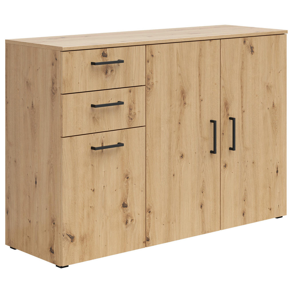 Blagovna znamka Carryhome nudi pohištvo za vse vrste prostorov, med drugim za dnevne sobe, jedilnice, spalnice, pisarne in predsobe. Znana je po simplističnih, a slogovno dovršenih dizajnih, pestrem izboru ter odličnem razmerju med kakovostjo in ceno. Omarica v kvalitetni imitaciji hrasta je primerna predvsem za dnevne sobe, pisarne in hodnike. Ponaša se s 3 nastavljivimi policami ter 2 predaloma, ki omogočajo prilagodljivo shranjevanje najrazličnejših predmetov, vtis pa dopolni eleganten dizajn, ki se bo kot doma počutil v večini interierjev. Ključne prednosti: Enostavno vzdrževanje: Za čistočo zadošča občasno brisanje s suho in vlažno krpo. Funkcionalnost: 3 nastavljive police in 2 predala omogočajo fleksibilno in individualizirano organizacijo prostora ter shranjevanje številnih potrebščin. Estetska dovršenost: Zaradi nevpadljive zasnove se izdelek lahko brezhibno vključi v večino sodobnih notranjih prostorov. Lastnosti: Dimenzije: Širina 80 cm, višina 83 cm, globina 52 cm Barva: Hrast artisan, antracit Teža: Pribl. 27 kg Maks. obremenitev na polico: Pribl. 4 kg Debelina materiala: Pribl. 15 mm Materiali: Imitacija lesa (iverna plošča, folija z dekorjem), umetna masa