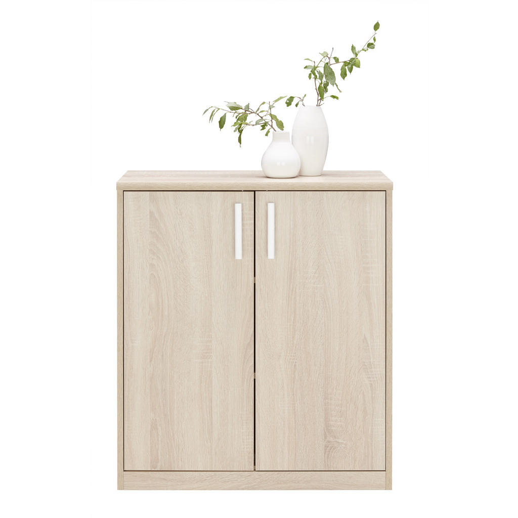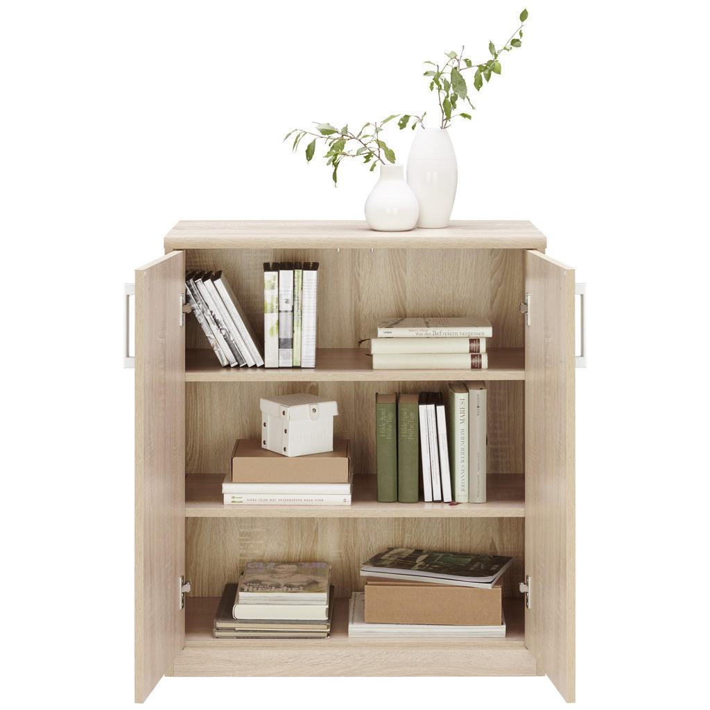 Blagovnaznamka Xoranudistanovanjsko pohištvo: ne jamči samo trenutne, temveč tudidolgoročno kakovost. Njena izredno široka ter fleksibilna ponudbaobsega dnevne sobe, jedilnice, spalnice, predsobe ter kopalnice in bozagotovo zadostila vsakomur, ki sestavlja prvi dom. Funkcionalna, trpežna komoda iz kvalitetne imitacije lesa se ponaša z 2 nastavljivima policama in vam bo občutno pomagala pri shranjevanju predmetov ter organizaciji prostorov. Zaradi minimalistične zasnove in kompaktnih dimenzij se poda večini sodobnih interierjev, zlasti pa je primerna za dnevne sobe ter jedilnice. Ključne prednosti: Izdelek je na voljo v različnih barvah, torej boste gotovo našli tisto, ki ustreza vašemu slogu. Enostavno vzdrževanje: Za čistočo zadošča občasno brisanje s suho krpo. Nastavljivi polici omogočata fleksibilno in individualizirano organizacijo prostora. Lastnosti: Dimenzije: Širina 72 cm, višina 84 cm, globina 36 cm Barva: Hrast sonoma, srebrne barve, črna Materiali: Imitacija lesa (iverna plošča), kovina Površina: Folija z dekorjem