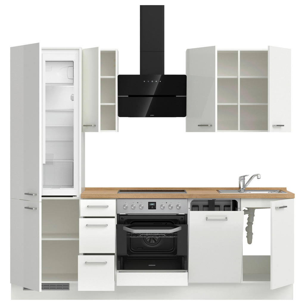 Kuhinjski blok brez aparatov je odlična rešitev za vse, ki si želijo popolnoma prilagoditi kuhinjskiprostor svojim potrebam. Omogoča prosto izbiro gospodinjskih naprav ter hkratiponuja funkcionalno osnovo za vsakodnevno kuhanje in shranjevanje. Kuhinjski blok znamke Celina Home, izdelan v Nemčiji, združuje vrhunsko kakovost, dovršen dizajn in sodobenvidez. Narejen je iz kakovostnega lesa v odtenkih hrasta ter beli barvi visokega sijaja, kar mu daje topel, a hkrati moderen videz. Njegova struktura vključujekombinacijo zgornjih in spodnjih omaric s sistemom za mehko in tiho zapiranje terdelovno površino, ki omogoča praktično in organizirano kuhinjsko izkušnjo. Ključne prednosti: Posebnosti – certifikati Blauer Engel, PEFC, Zlati M; na voljo v zrcalni postavitvi Sodoben dizajn – s sodobnim modernim izgledom se poda k različnim notranjim stilom in prostoru doda luksuzen pridih Stabilnost in trpežnost – zagotavlja dolgotrajno uporabo Lastnosti: Material: les, kovina Barva: bela barva visokega sijaja in odtenki hrasta Širina: 240 cm