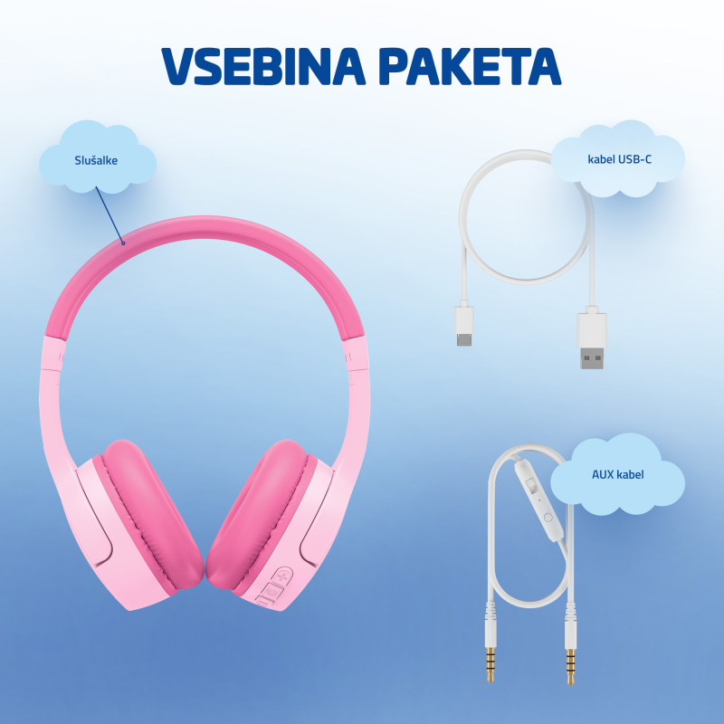 <p style="text-align: justify; margin: 0 0 10px 0;margin: 0 0 10px 0"Zabava otrok na poti ni več problem, če si nadenejo roza ali modre slušalke, lahko res dolgo gledajo pravljico ali druge videe. Ko je povezan prek Bluetooth 5.3 z učinkovitim upravljanjem baterije, baterija zdrži do 35 ur pri 50% glasnosti ali pa uporabite kabel. In polnjenje? Vzame le 10 minut in to sta 2 uri poslušanja. Bluetooth ima izboljšan doseg in se takoj poveže z napravo. Ko je otrok denimo na pogovoru s starimi starši, je nujen kvaliteten mikrofon, slušalke pa tega imajo. Z njimi je zelo enostavno upravljati, video navodila pa vam bodo pomagala, ko jih boste prvič spoznali. Omeniti velja tudi embalažo, ki vsebuje minimalno plastiko, saj ekologije ne gre podcenjevati.