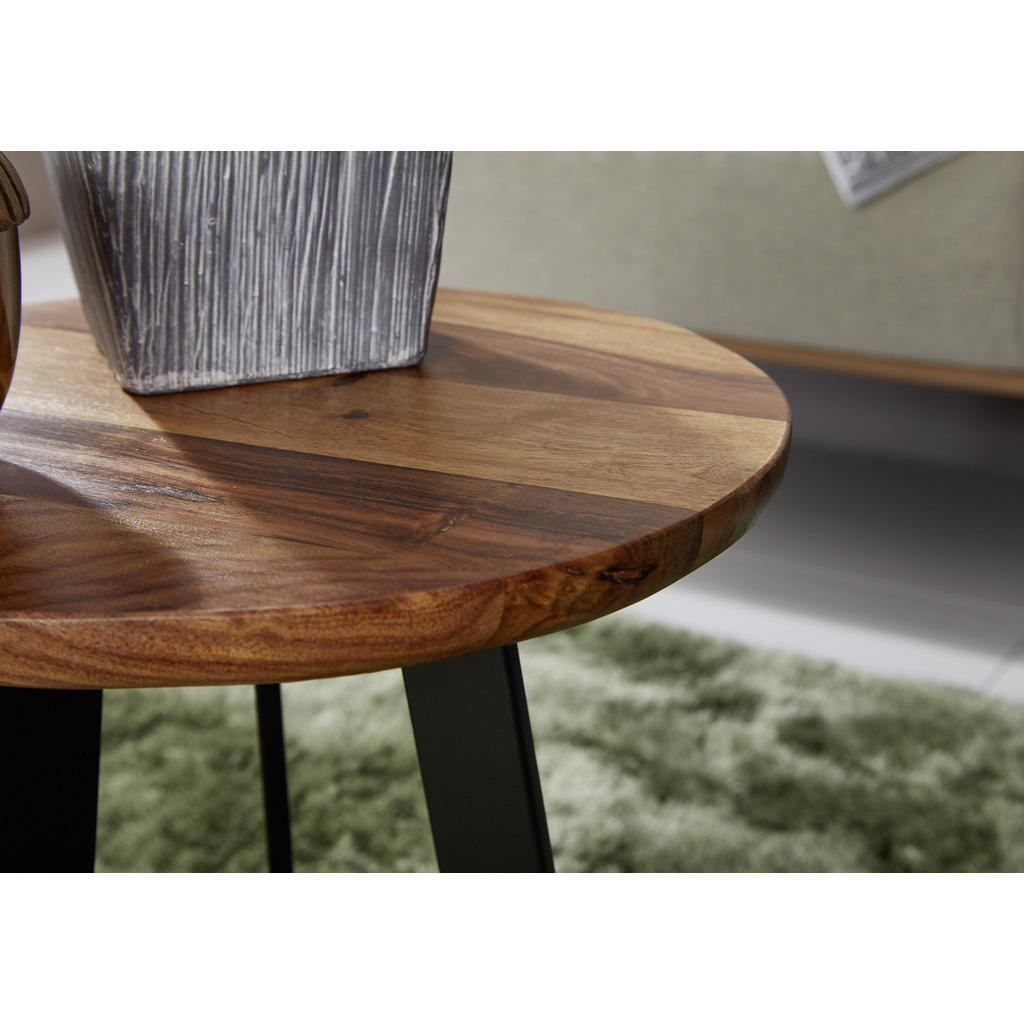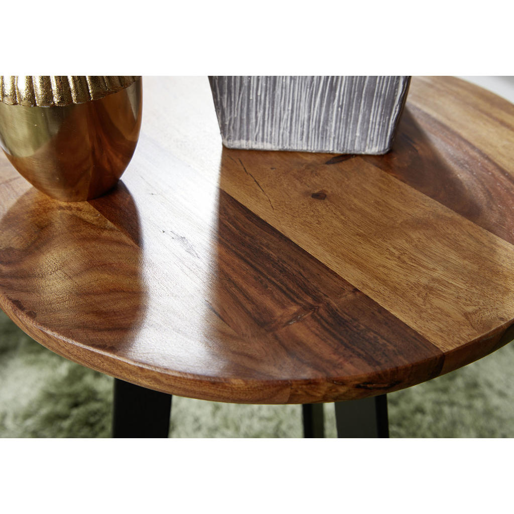 Dodajte pridih eksotike in topline v svoj dom z edinstveno mizico iz masivnega indijskega rožnega lesa. Ta čudovita lesena mizica bo v vaš prostor vnesla naravno eleganco, obenem pa navdušila v različnih ambientih – postavite jo ob naslanjač ter dopolnite s cvetočo orhidejo ali pa v predsobo, spalnico ali celo pokrito teraso. Indijski rožni les je znan po svoji izjemni trdoti, dolgotrajni obstojnosti in prepoznavni strukturi z razgibanimi, naravnimi vzorci. Njegovi barvni odtenki segajo od tople zlate do temno rjave z značilnimi vijugastimi linijami, ki ustvarjajo občutek globine in elegance. Zaradi teh naravnih značilnosti je vsak kos iz indijskega rožnega lesa unikaten, saj se struktura in barvni prehodi nikoli ne ponovijo popolnoma enako. Prav ta pristna neponovljivost lesu daje močan vizualni učinek ter prostoru doda toplino, značaj in občutek ročne obdelave. Lepo se bo ujela tako z industrijskim