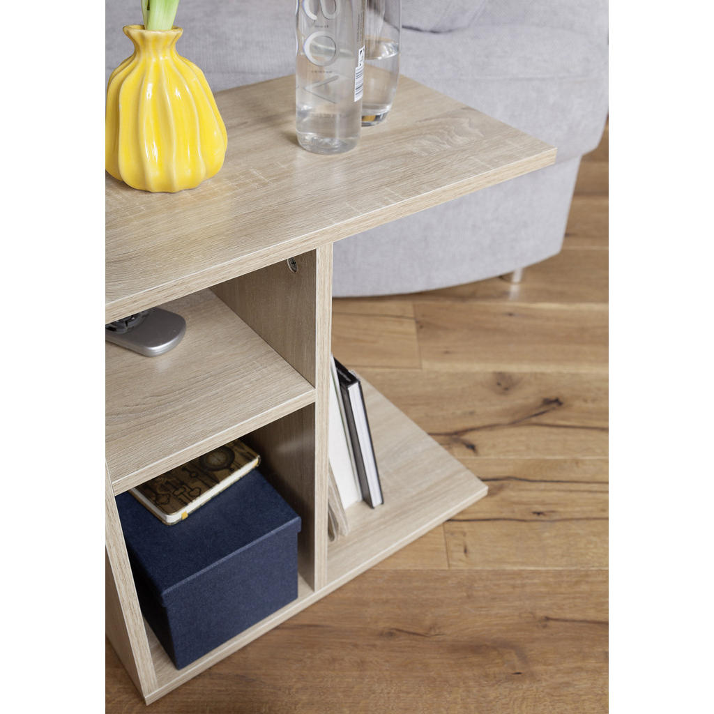 MID.YOU mizica v barvi hrasta sonoma je kompaktna in funkcionalna rešitev za vaš dom. Z merami 50 × 30 × 50 cm se odlično prilega manjšim prostorom, kot so dnevna soba, spalnica, hodnik ali delovni kotiček. Površina v naravnem videzu hrasta ustvarja prijeten, domač občutek in se zlahka kombinira z različnimi slogi pohištva. Izdelana je iz iverne plošče, prevlečene z melaminsko smolo, kar zagotavlja vzdržljivost in enostavno čiščenje. Mizica vam lahko služi za serviranje kave, knjige, okrasne predmete, namizno svetilko ali rastline. Ključne prednosti: Sodoben videz. Vzdržljiv material. Enostavno či&sc
