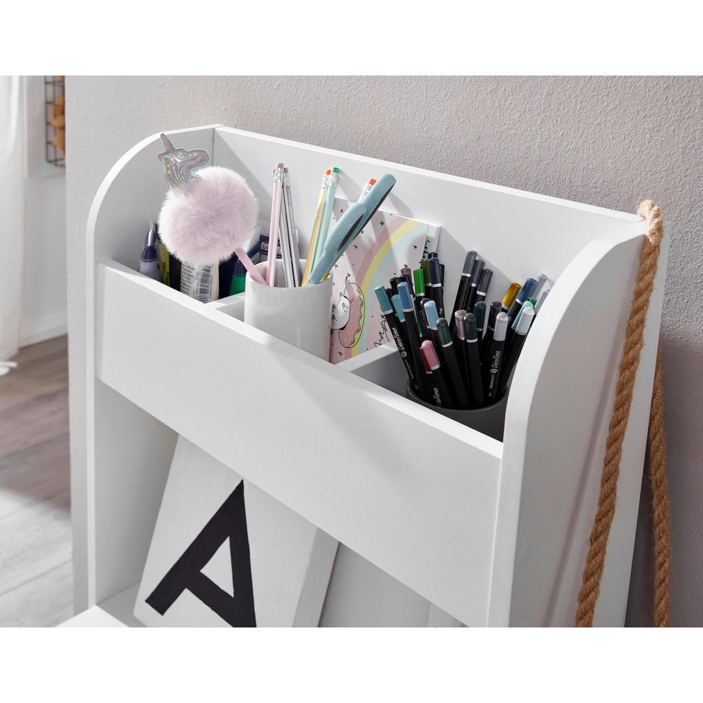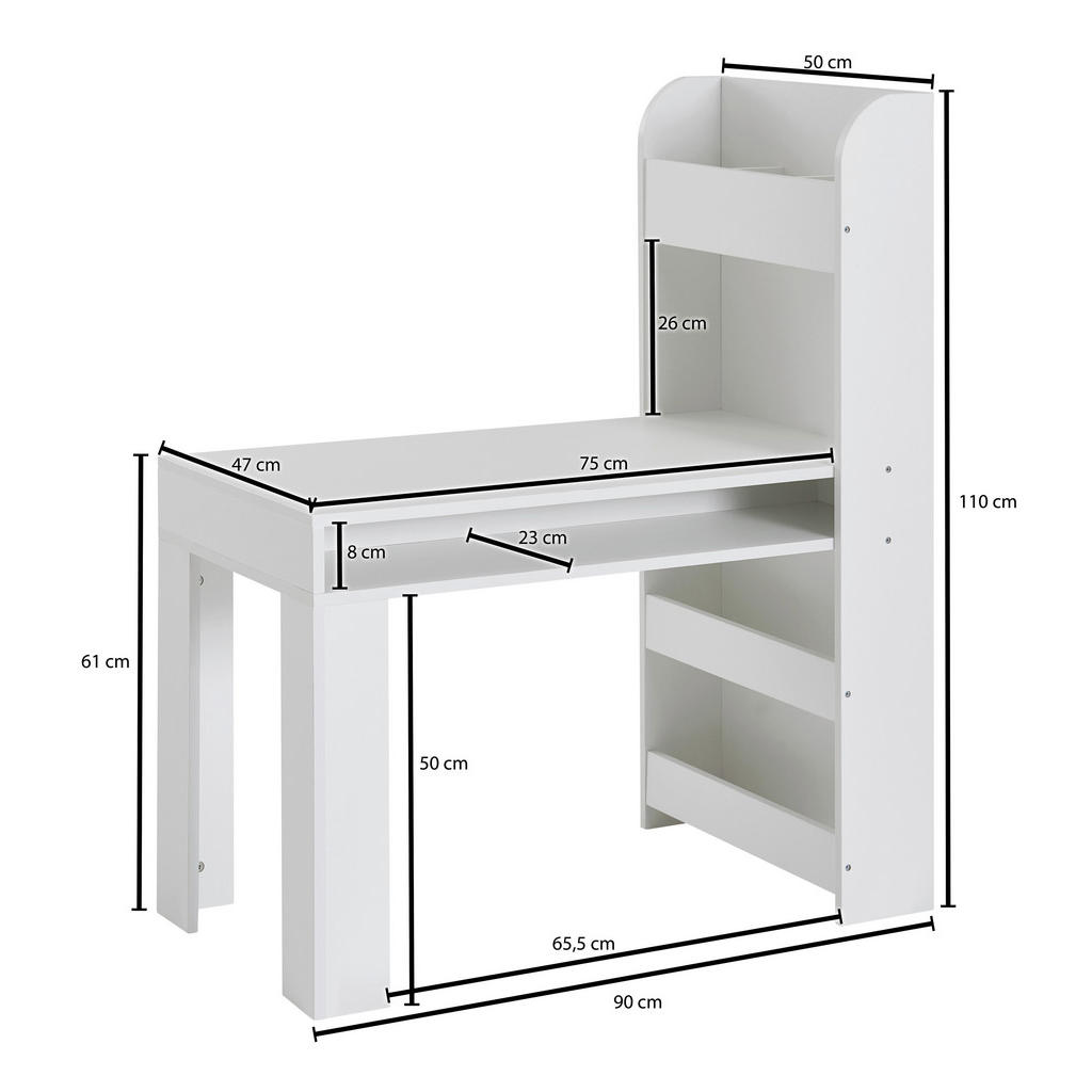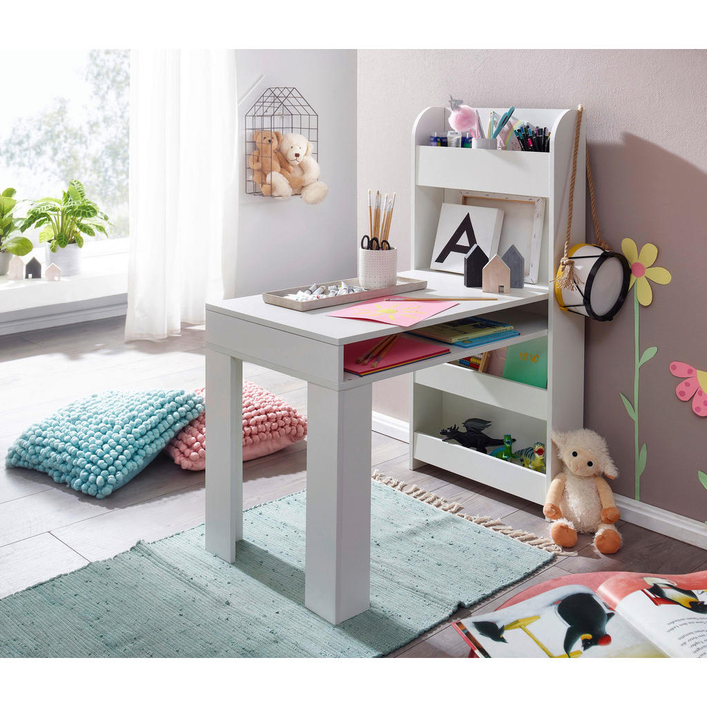 Blagovnaznamka Mid.Youobsega širok spekter pohištva, dodatkov za pohištvo in tekstila.Naj gre za dnevno sobo, otroško sobo, spalnico ali jedilnico, pravgotovo boste našli izdelke, ki so zelo estetsko dovršeni, a zatonič manj funkcionalni. Slogan “Sredi vašega doma.” se zaradiraznolike in kvalitetne ponudbe znamki resnično poda. Robustna mladinska pisalna miza v beli barvi se ponaša z obilico predalov, ki omogočajo organizacijo prostora ter shranjevanje predmetov in občutno ojačajo funkcionalnost izdelka. Ta je v osnovi idealen za študij, branje, učenje, pa tudi sproščanje. Zaradi nevtralnega dizajna se bo doma počutil v vsaki mladinski sobi. Ključne prednosti: Visoka kapaciteta: Četverica odprtih predalov ter prostor za shranjevanje pod mizo omogočajo shranjevanje najrazličnejših potrebščin. Minimalistična zasnova: Nevtralna bela barva poskrbi, da se izdelek lepo spoji z večino mladinskih sob. Enostavna montaža, ki ne zahteva posebnih spretnosti. Lastnosti: Dimenzije: Dolžina 90 cm, širina 50 cm, višina 110 cm Barva: Bela Maks. obremenitev: Pribl. 20 kg Debelina materiala: Pribl. 15 mm Materiali: Imitacija lesa (iverna plošča)