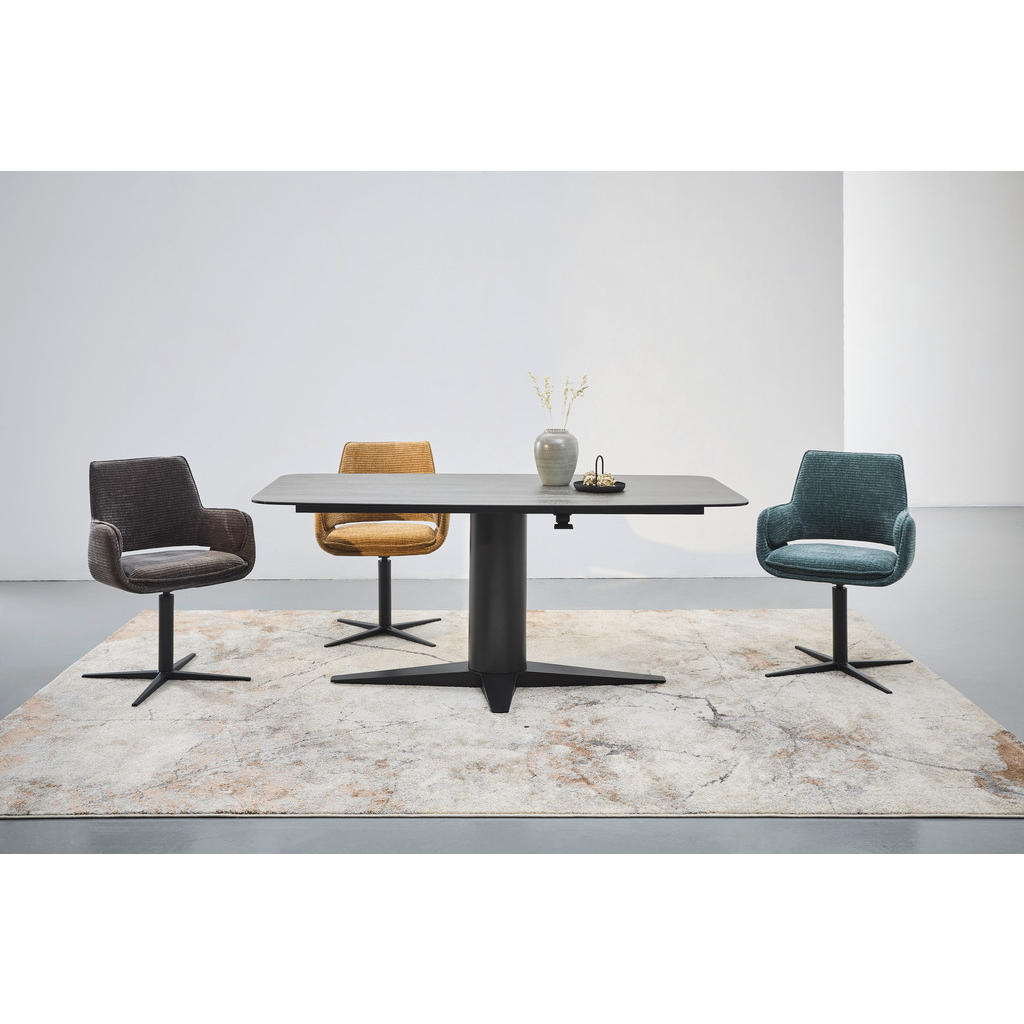 Blagovna znamka Emilio Belluti se specializira za oblazinjeno pohištvo ter se ponaša z značilno italijansko eleganco. Ponudba med drugim obsega sedežne garniture, zofe, fotelje in tabureje, izdelki pa so raznoliki in omogočajo prilagoditev glede na kupčeve potrebe. Elegantne linije, prefinjeni detajli in vsesplošna sofisticiranost govorijo same zase, vtis pa dopolnijo kakovostni materiali, ki izdelkom zagotavljajo dolgo življenjsko dobo. Estetsko dovršen naslanjač, primeren predvsem za jedilnice se ponaša z udobjem (penasta notranjost), eleganco (čudovit tekstil iz sintetičnih vlaken in mikrovlaken) ter trpežnostjo (noge iz litega, prašno lakiranega železa). Gotovo bo obogatil vsako sodobno jedilnico, zlasti ker je na voljo v različnih barvah. Ključne prednosti: 360-stopinjska vrtljivost občutno olajša rotiranje in premikanje. Enostavna montaža, ki ne zahteva posebnih spretnosti. Udobje: Naslona za roke in penasta notranjost naredijo izdelek primeren za dolgotrajno sedenje. Lastnosti: Dimenzije: Širina 60 cm, višina 84 cm, globina 59 cm Barva: Modra Maks. obremenitev: Pribl. 140 kg Materiali: Lito, prašno lakirano železo, tekstil (sintetična vlakna, mikrovlakna) Notranjost: Pena