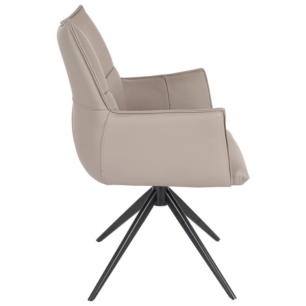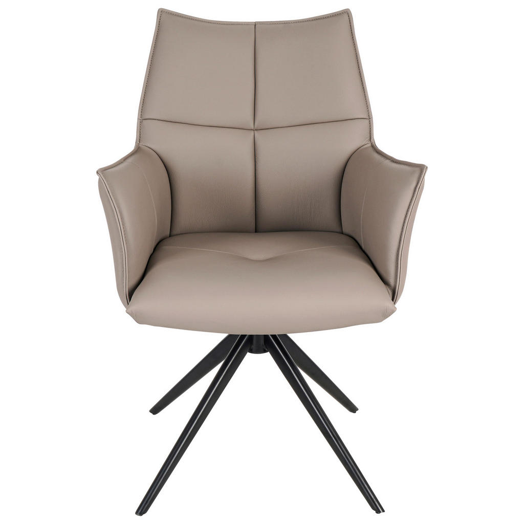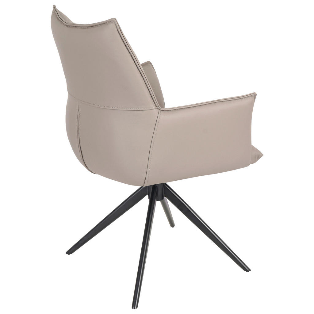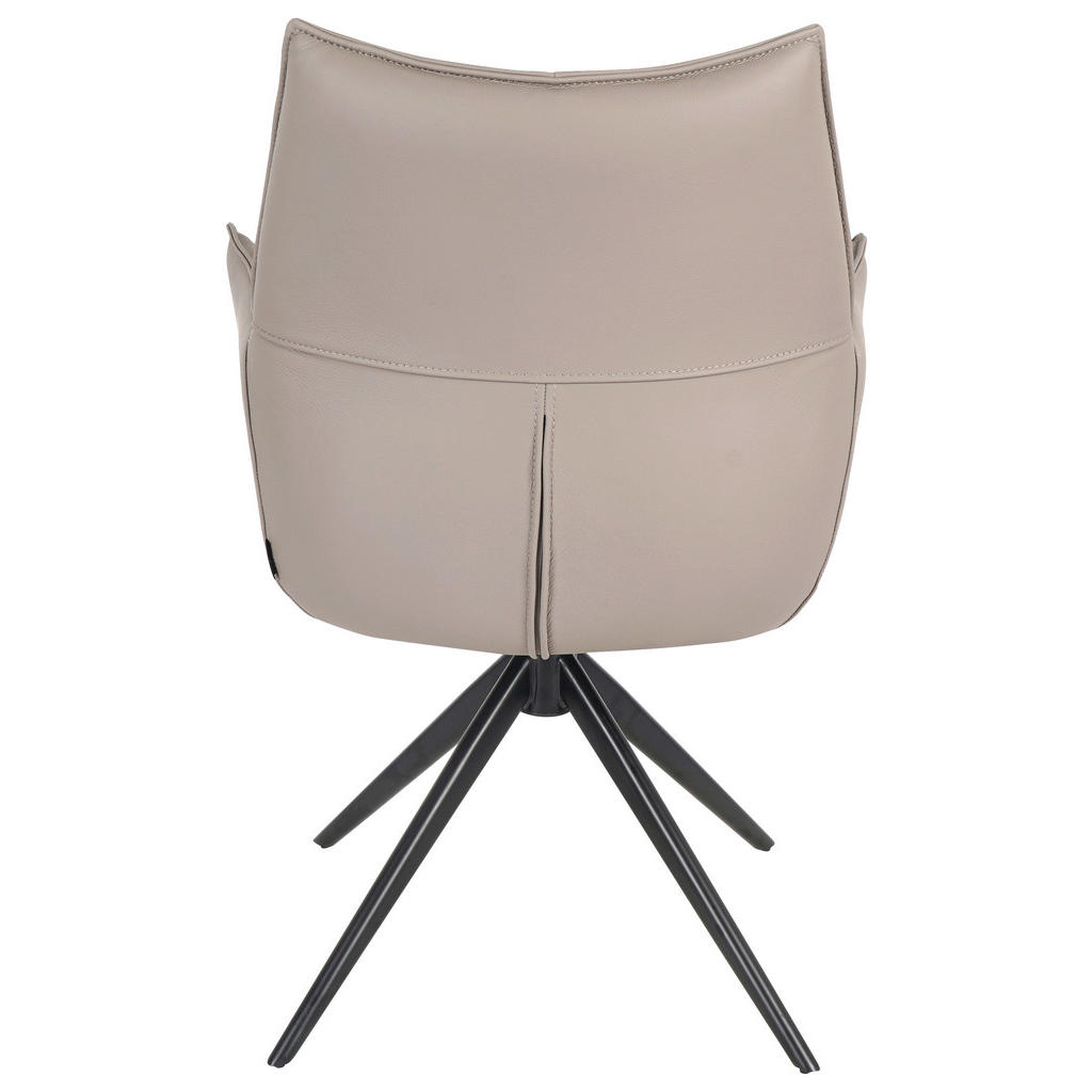Blagovnaznamka Novelzdružuje kakovost, eleganco in funkcionalnost ter se ponaša zmodernimi, a nevpadljivimi izdelki, ki bodo gotovo obogatilimarsikateri notranji prostor. Ponudba zajema dnevne sobe, kuhinje,jedilnice, kopalnice, spalnice, predsobe ter pisarne, vključuje patudi dodatke, denimo posode, kozarce, preproge, zavese inposteljnine. Estetsko dovršen naslanjač iz kakovostnega, pigmentiranega govejega usnja in prašno lakiranega železa se ponaša s trpežnostjo, eleganco in funkcionalnostjo. Primeren je za širok spekter prostorov, med drugim jedilnice, dnevne sobe in delovne prostore. Zaradi minimalističnega videza se bo brezhibno vključil v vse naštete interierje. Ključne prednosti: 360-stopinjska vrtljivost, ki olajša premikanje. Enostavna montaža, ki ne zahteva posebnih spretnosti. Udobje, h kateremu močno pripomorejo notranjost iz pene ter naslona za roke. Lastnosti: Dimenzije: Širna 62 cm, višina 91 cm, globina 62 cm Barva: Črna, rjavosiva Maks. obremenitev: Pribl. 140 kg Materiali: Prašno lakirano železo, pigmentirano goveje usnje, pena