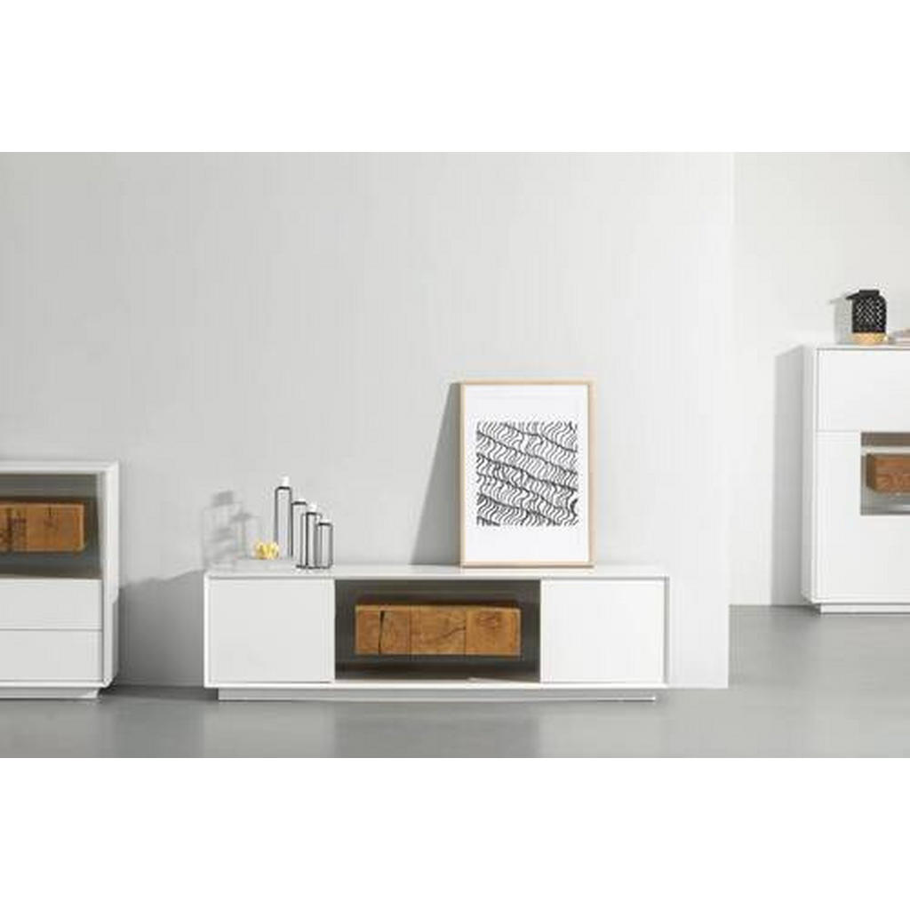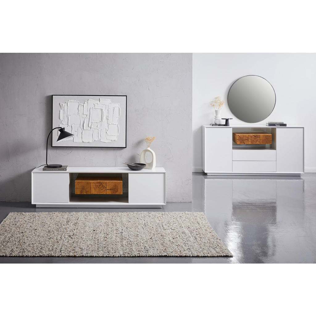 Nizka omarica MID.YOU združuje sodobno eleganco bele barve z naravno toplino hrastovih detajlov. Prečiščene linije in kombinacija MDF-ja, stekla ter delno masivnega lesa ustvarjajo kakovosten kos pohištva, ki se odlično poda v moderne in skandinavsko navdihnjene dnevne prostore. Zaradi premišljene notranje razporeditve nudi dovolj prostora za shranjevanje, hkrati pa deluje lahkotno in estetsko dovršeno. Ključne prednosti: Elegantna kombinacija bele barve in hrasta za brezčasen videz Delno masivni hrastovi elementi za naraven in kakovosten občutek Soft-Close sistem pri vratih za tiho in udobno zapiranje Odpiranje brez ročajev za čist in moderen dizajn Nastavljive police za prilagodljivo organizacijo shranjevalnega prostora Lastnosti: Dimenzije: <