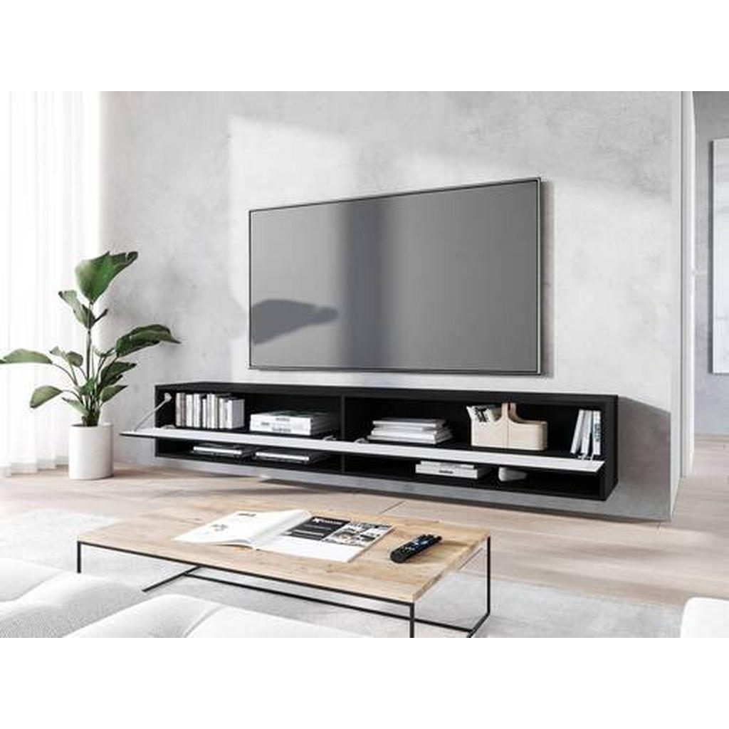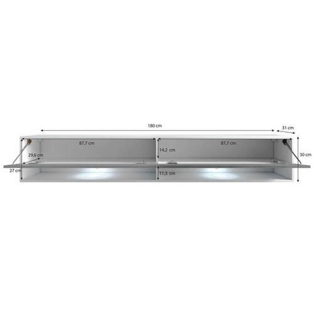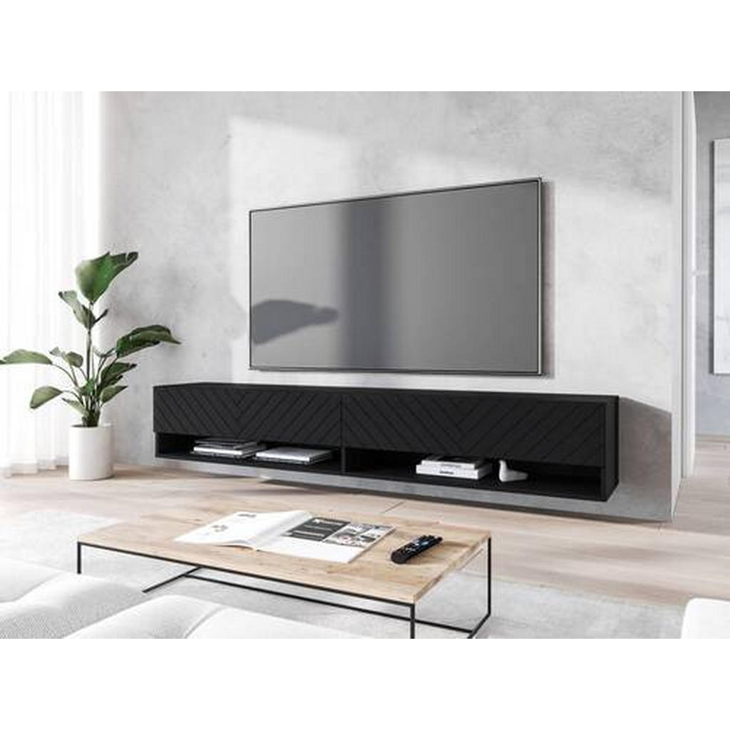 Nizka omarica z vzorcem ribje kosti je trendovski, izjemno elegantno zasnovan kos, ki v vsak sodoben dom vnese prefinjen videz in praktično organizacijo. Njena ozka in dolga silhueta (180 cm dolžine, le 30 cm višine) omogoča estetsko umeščanje v dnevne prostore, predsobe ali moderne multimedijske ambiente. Črna barva v kombinaciji z dekorjem ustvarja premium videz, ki poudari teksturo in sodoben karakter pohištva. Omarica poskrbi za zaprt shranjevalni prostor ter dve odprti polici, ki sta idealni za elektroniko ali dekorativne elemente. Vgrajena LED osvetlitev (hladno bela) poskrbi za prijeten ambient in vizualno poudari strukturo materialov. Model je mogoče postaviti stoječe ali viseče, kar omogoča popolno prilagodljivost vašemu prostoru, obenem pa navduši z enostavno montažo in stabilno konstrukcijo. Ključne prednosti: Sodoben črn dizajn z vzorcem za elegantno vizualno noto Možnost stoječe ali viseče namestitve Priložena LED osvetlitev za ambient in poudarjen videz Dve klapi + dve odprti polici za praktično shranjevanje <