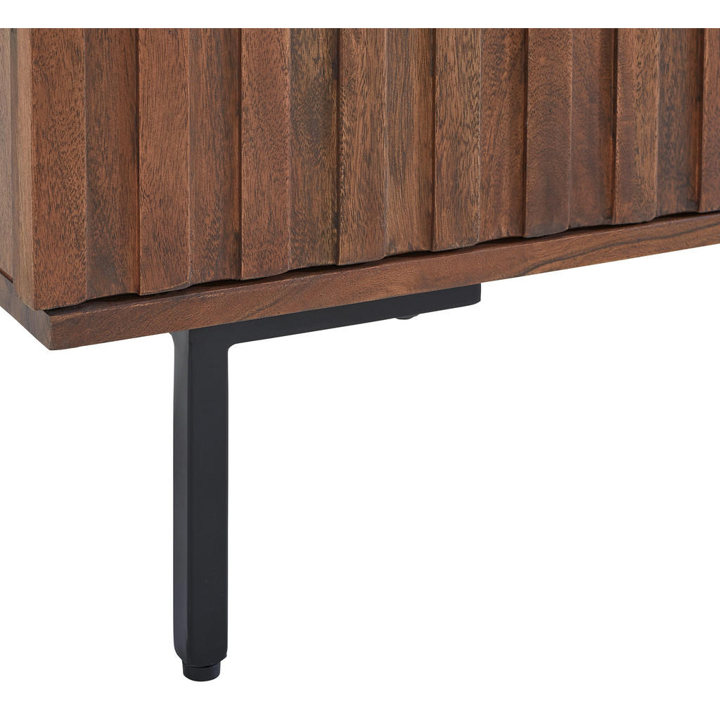 Nizka omarica MID.YOU prinaša v vaš dom popolno kombinacijo sodobnega dizajna in funkcionalnosti. Elegantna kombinacija črne in orehove barve daje prostoru toplino in prefinjen pridih. S premišljeno razporeditvijo prostora z dvema predaloma, vrati in tremi odprtimi prostori omogoča enostavno shranjevanje televizijske tehnike, dekorativnih predmetov ali vsakodnevnih potrebščin. Izdelana je iz kakovostnega masivnega akacijevega lesa, MDF-a in kovinskih elementov, kar zagotavlja dolgo življenjsko dobo in stabilnost. Omarica ima Soft-Close sistem na vratih za tiho in udobno zapiranje ter dvignjene noge (17 cm), ki olajšajo čiščenje pod njo. Omarica je idealna rešitev za vse, ki cenijo elegantno, praktično in trpežno pohištvo. Njena montaža je enostavna, kar omogoča hitro in udobno postavitev v vsakem prostoru. Ključne prednosti: Elegantna kombinacija črne in orehove barve za moden in topel videz Masivni akacijev les, MDF in kovinski elementi za robustnost Soft-Close sistem na vratih za tiho in udobno zapiranje