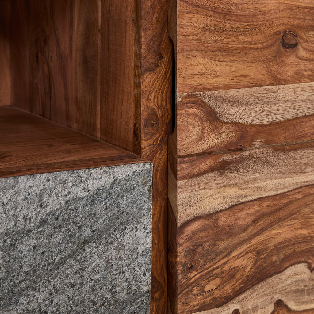 Nizka omarica je popolna izbira za vse, ki želite v svoj dom vnesti toplino naravnega lesa in sodoben pridih. Izdelana je iz kakovostnega masivnega lesa akacije in sheeshama, ki z edinstveno strukturo ustvarja brezčasen videz. Kombinacija naravnih tonov in sivih poudarkov poskrbi, da se omarica lepo poda tako v moderne kot tudi klasične bivalne prostore. Zaradi premišljene zasnove je idealna kot TV-omarica ali eleganten shranjevalni element v dnevni sobi. Ključne prednosti: Izdelana iz 100 % masivnega lesa, ki zagotavlja dolgo življenjsko dobo Edinstven videz zahvaljujoč naravni strukturi lesa – vsak kos je unikaten Praktična razporeditev z vrati, predalom in odprtim predalom Soft-Close sistem na vratih za tiho in udobno zapiranje Stabilna konstrukcija z nosilnostjo do 120 kg Omarica je dobavljena že montirana, brez dodatnega sestavljanja Lastnosti: