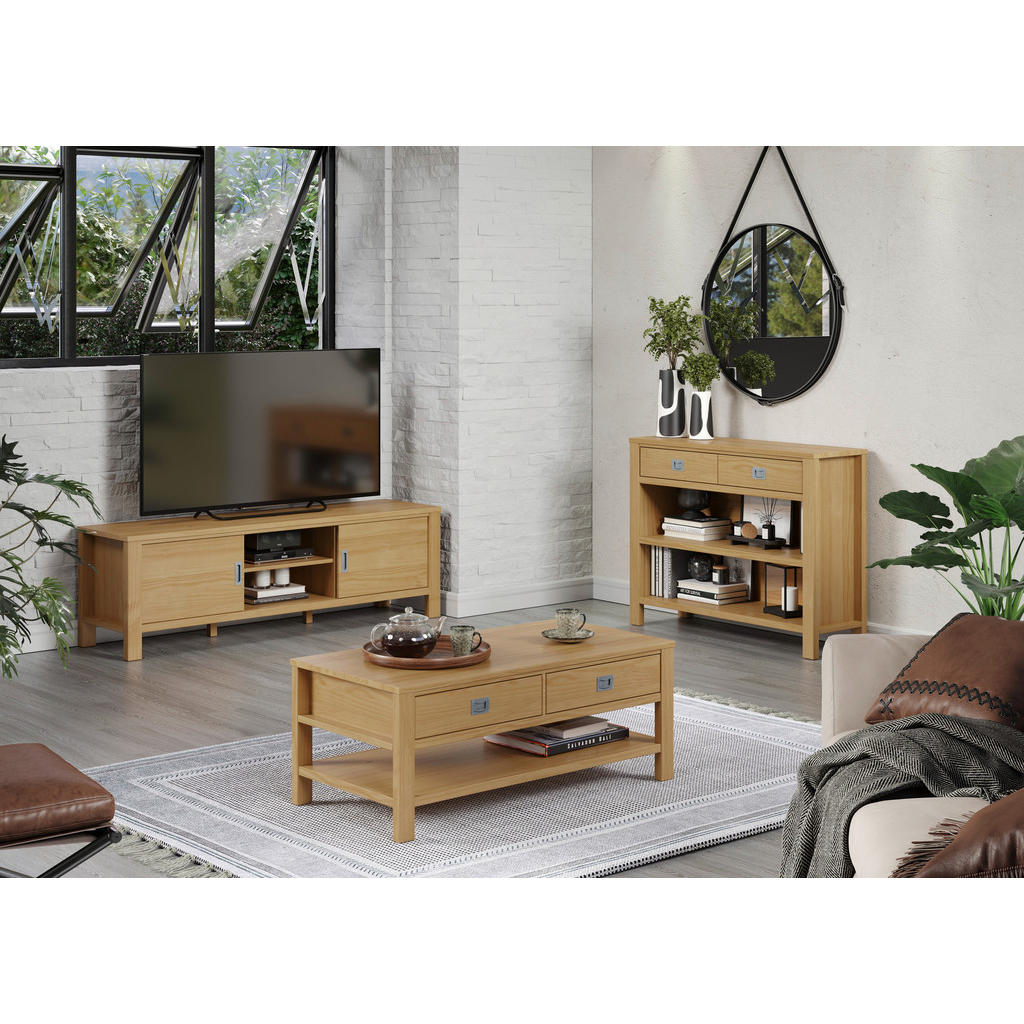 Odkrijte popolno kombinacijo šarma in sodobnega dizajna z nizko omarico Livetastic, ki bo vaš dnevni prostor preoblikovala v topel in urejen kotiček. Izdelana iz masivnega bora in MDF, je ta omarica zasnovana tako, da nudi dolgotrajno trpežnost in eleganten videz. Praktične shranjevalne površine in odprti predali poskrbijo za organizacijo, hkrati pa dopolnjujejo estetski videz. Ključne prednosti: Visokokakovostni materiali – masivni bor iz Brazilije, MDF in kovinski ročaji za trpežnost in sodoben izgled. Funkcionalno shranjevanje – 2 odprta predala, 2 x vrata z drsnim sistemom in nastavljive police. Naravni dizajn – naravna barva lesa z ohranjeno strukturo, ki prinaša toplino in pristnost v prostor. Trajnost in certifikati – FSC MIX certificiran les za okolju prijazno izbiro. Enostavna montaža in vzdrževanje &nd