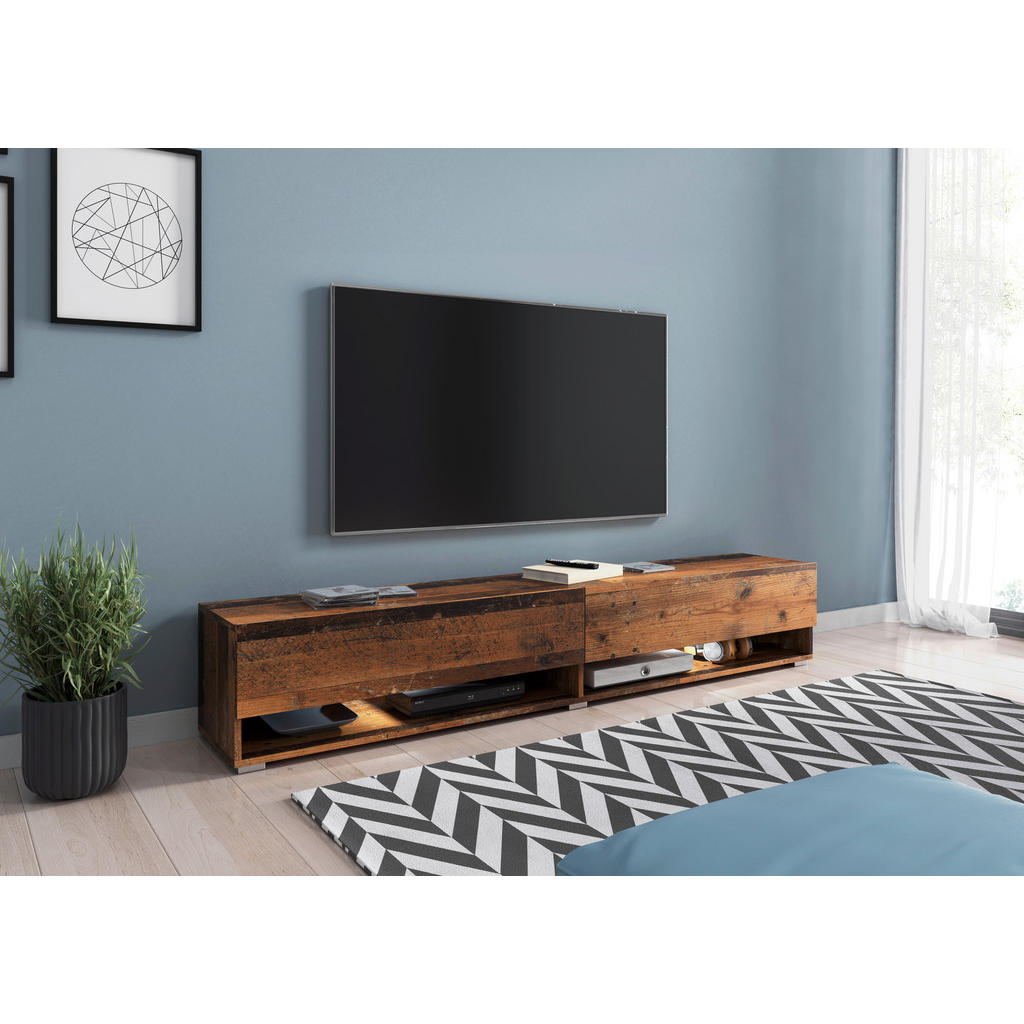 Nizka omarica P & B je popolna izbira za vse, ki želijo v svoj dom vnesti toplino starega hrastovega videza, pridih rustikalnega stila ter dodatno ambientalno osvetlitev. S kombinacijo LED-osvetlitve, odprtih polic in zaprtih omaric združuje estetiko in funkcionalnost — idealno za sodobne dnevne sobe. Ključne prednosti: Vrhunski videz starega hrasta (Old Vintage) za topel, trendovski ambient Vključen LED-svetlobni sistem za poudarjene detajle in atmosfero Kombinacija odprtih polic in klapnih omaric za organizirano shranjevanje Možnost postavitve stoječe ali viseče Praktični kabelski izrezi za TV-opremo in elektroniko Robustna izdelava iz melaminsko zaščitenega lesenega dekorja Lastnosti: