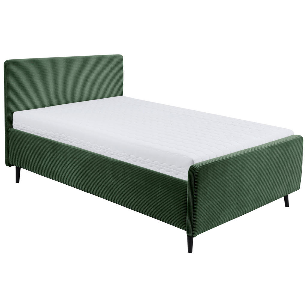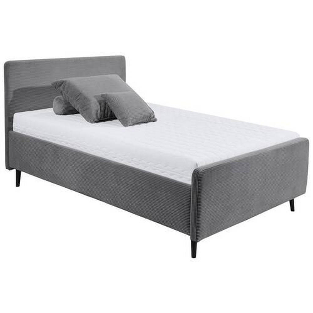 OBLAZINJENA POSTELJA 120 cm x 200 cm , tekstil, leseni material temno siva