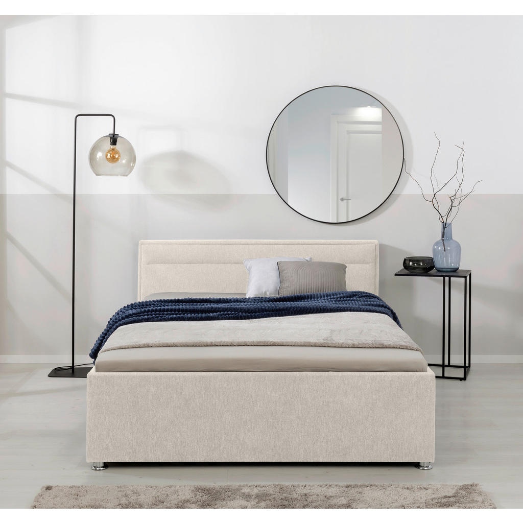 OBLAZINJENA POSTELJA 140 cm x 200 cm , les, kovina, umetna masa, tekstil naravne barve